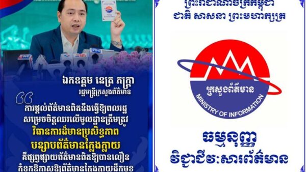 ឯកឧត្តម រដ្ឋមន្ត្រីក្រសួងព័ត៌មាន នេត្រ ភក្ត្រា ៖ អ្នកសារព័ត៌មានត្រូវតែចុះយកព័ត៌មានពិត ហាម!បង្កើតព័ត៌មានក្លែងក្លាយយកទៅផ្សព្វផ្សាយ និងមិនចែករំលែខព័ត៌មានក្លែងក្លាយ