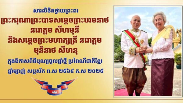 ឯកឧត្តម ឧត្តមសេនីយ៍ឯក រ័ត្ន ស្រ៊ាង សូមក្រាបបង្គំទូលថ្វាយព្រះពរ ព្រះករុណាជាអម្ចាស់ជីវិតលើត្បូង និងព្រះវររាជមាតាជាតិខ្មែរ ក្នុងឱកាសបុណ្យចូលឆ្នាំថ្មី ឆ្នាំម្សាញ់ សប្តស័ក ព.ស.២៥៦៩