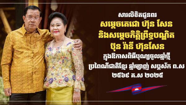 ឯកឧត្តម ឧត្តមសេនីយ៍ឯក រ័ត្ន ស្រ៊ាង ផ្ញើសារលិខិតគោរពជូនពរសម្ដេចតេជោ ហ៊ុន សែន និងសម្ដេចកិត្តិព្រឹទ្ធបណ្ឌិត ក្នុងឱកាសបុណ្យចូលឆ្នាំថ្មី ឆ្នាំម្សាញ់ សប្តស័ក ព.ស.២៥៦៩
