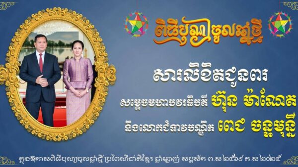 ឯកឧត្តម ឧត្តមសេនីយ៍ឯក រ័ត្ន ស្រ៊ាង ផ្ញើសារលិខិតគោរពជូនពរសម្ដេចបវរធិបតី ហ៊ុន ម៉ាណែត និងលោកជំទាវបណ្ឌិត ពេជ ចន្ទមុន្នី ក្នុងឱកាសបុណ្យចូលឆ្នាំថ្មី ឆ្នាំម្សាញ់ សប្តស័ក ព.ស.២៥៦៩