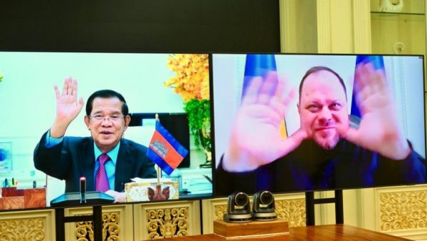 សម្ដេចតេជោ ហ៊ុន សែន អញ្ជើញជួបសន្ទនាជាមួយ ប្រធានសភាអ៊ុយក្រែន តាមប្រព័ន្ធវីដេអូ