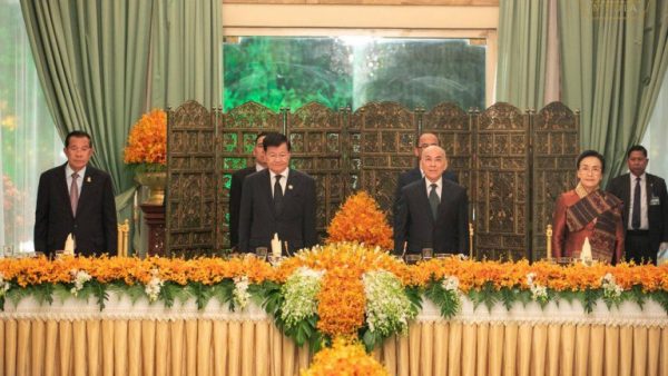 សម្ដេចតេជោ ហ៊ុន សែន អញ្ជើញដង្ហែរព្រះមហាក្សត្រ ក្នុងពិធីលៀងសាយភោជន៍ ជូនឯកឧត្តម ថងលុន ស៊ីសុលីត ប្រធានរដ្ឋ នៃសាធារណរដ្ឋប្រជាធិបតេយ្យប្រជាមានិតឡាវ