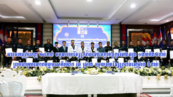 អាវុធហត្ថភ្នំពេញ ២៨នាក់ ទទួលបានខ្សែក្រវ៉ាត់ខ្មៅតេក្វាន់ដូកូរ៉េខាងត្បូង ១ដាន់និង២ដាន់ ព្រមជាមួយលោកឧត្តមសេនីយ៍ឯក រ័ត្ន ស្រ៊ាង ទទួលបានខ្សែក្រវាត់ខ្មៅថ្នាក់ ៦ដាន់!