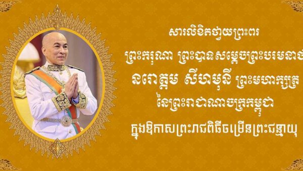 ទូលព្រះបង្គំជាខ្ញុំ រ័ត្ន ស្រ៊ាង សូមថ្វាយព្រះពរព្រះករុណាជាអម្ចាស់ជីវិតតម្កល់លើត្បូង ក្នុងឱកាសព្រះរាជពិធីចម្រើនព្រះជន្ម គម្រប់ខួប៧២ យាងចូល ៧៣ព្រះវស្សា