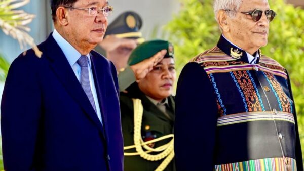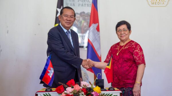 ប្រធានាធិបតីទីម័រឡេស្តេ បំពាក់គ្រឿងឥស្សរិយយស Grand Collar of the Order of Timor-Leste ជូន សម្ដេចតេជោ