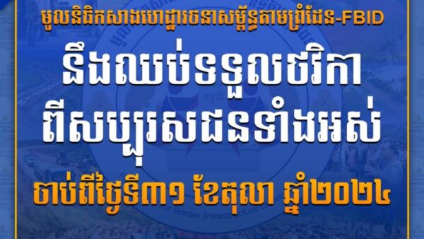ខុទ្ទកាល័យ សម្តេចមហាបវរធិបតី នាយករដ្ឋមន្ត្រី មានកិត្តិយសសូមជម្រាបជូនដំណឹង ដល់សាធារណជន មេត្តាជ្រាបថា៖ “មូលនិធិកសាងហេដ្ឋារចនាសម្ព័ន្ធតាមព្រំដែន” នឹងត្រូវបិទបញ្ចប់ ដោយឈប់ទទួលការចូលរួមបរិច្ចាគវិភាគទានស្ម័គ្រចិត្ត ចាប់ពីថ្ងៃទី៣១ ខែតុលាឆ្នាំ២០២៤ ខាងមុខនេះតទៅ