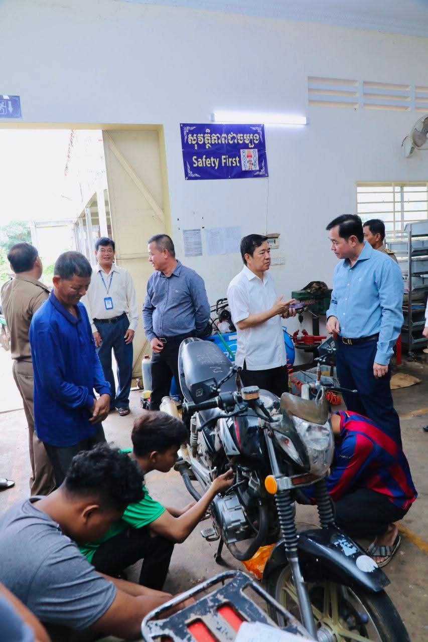(កំពង់ចាម)៖ នៅព្រឹកថ្ងៃទី២ ខែកញ្ញា ឆ្នាំ២០២៥ នេះឯកឧត្ដម អ៊ុ ន ចាន់ដា អភិបាលខេត្តកំពង់ចាម អមដំណើរដោយ ឯកឧត្តម សួស ឡា ប្រធានសាលាដំបូងខេត្ត ឯកឧត្តម វង្ស ប៊ុនវិសុទ្ធ ព្រះរាជអាជ្ញាននៃអយ្យការអមសាលាដំបូងខេត្ត និងក្រុមការងារ បានអញ្ជេីញចុះពិនិត្យសកម្មភាពអនុវត្តផ្ទាល់របស់សិក្ខាកាមក្នុងរោងជាងជួសជុលយានយន្តនៃវិទ្យាស្ថានពហុបច្ចេកទេស ខេត្តកំពង់ចាម (TVET) ស្ថិតនៅសង្កាត់បឹងកុក ក្រុងកំពង់ចាម។