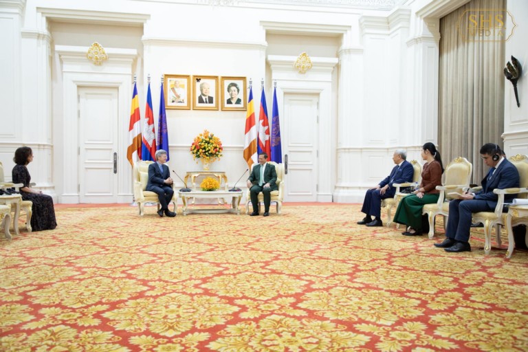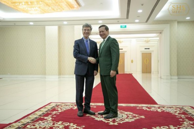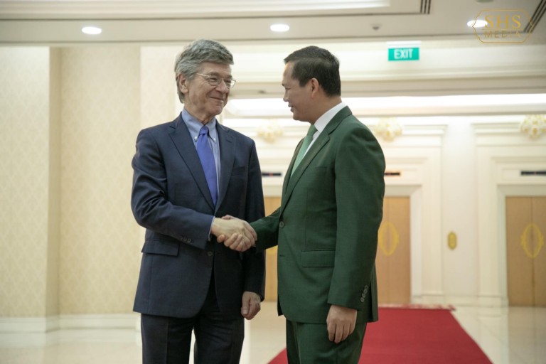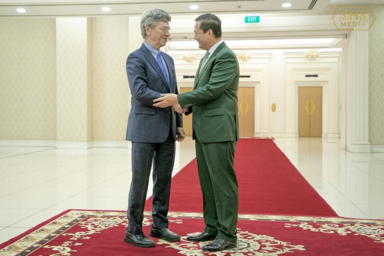 សម្តេចមហាបវរធិបតី ហ៊ុន ម៉ាណែត នាយករដ្ឋមន្ត្រី នៃព្រះរាជាណាចក្រកម្ពុជា បានអនុញ្ញាតឱ្យលោកសាស្ត្រាចារ្យ Jeffrey Sachs ប្រធានមជ្ឈមណ្ឌលសម្រាប់ការអភិវឌ្ឍដោយចីរភាព នៃសាកលវិទ្យាល័យកូឡុំប៊ី (Columbia) និងជាប្រធានផ្នែកដោះស្រាយការអភិវឌ្ឍដោយចីរភាពរបស់អង្គការសហប្រជាជាតិ ចូលជួបសម្តែងការគួរសម និងពិភាក្សាការងារ នៅវិមានសន្តិភាព ។