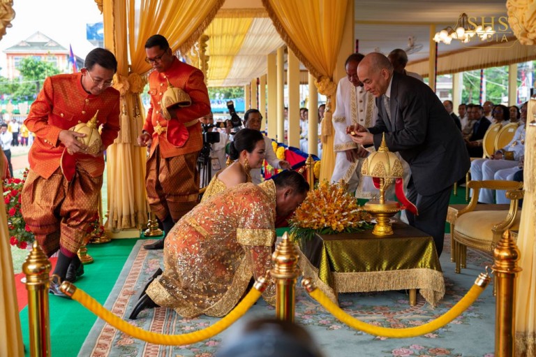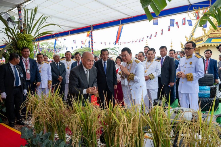 នៅព្រឹក ថ្ងៃអាទិត្យ ៤ រោច ខែពិសាខ ឆ្នាំរោង ឆស័ក ពុទ្ធសករាជ ២៥៦៨ ត្រូវនឹងថ្ងៃទី២៦ ខែឧសភា ឆ្នាំ២០២៤នេះ សម្ដេចអគ្គមហាសេនាបតីតេជោ ហ៊ុន សែន ប្រធានព្រឹទ្ធសភា នៃព្រះរាជាណាចក្រកម្ពុជា អញ្ជើញដង្ហែព្រះករុណាព្រះបាទសម្ដេចព្រះ បរមនាថ នរោត្តម សីហមុនី ព្រះមហាក្សត្រ នៃព្រះរាជាណាចក្រកម្ពុជា យាងទតការតាំងបង្ហាញផលិតផលកសិកម្ម កសិឧហ្សាកម្ម និងសិប្បកម្ម នៅក្នុងការតាំងបង្ហាញក្នុងព្រះរាជពិធីបុណ្យច្រត់ព្រះនង្គ័ល ដែលត្រូវបានធ្វើឡើងនៅទីព្រះស្រែ ក្នុងបរិវេណមន្ទីរអប់រំ យុវជន និងកីឡា ស្ថិតនៅក្រុងច្បារមន ខេត្តកំពង់ស្ពឺ។