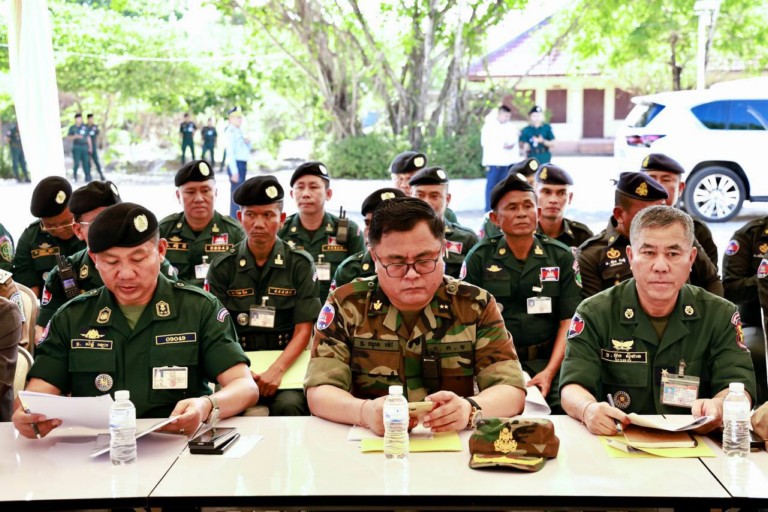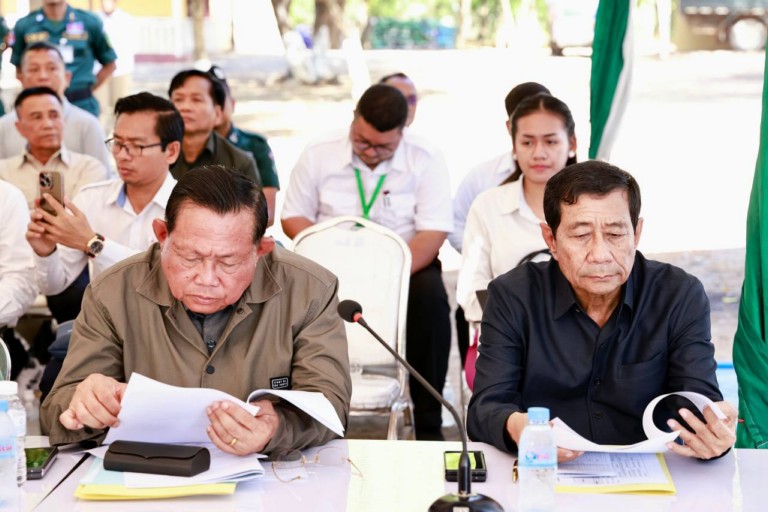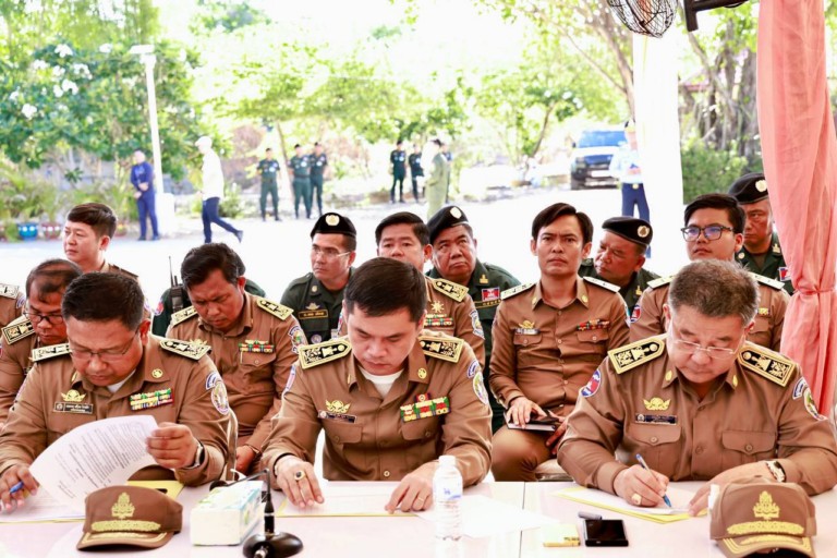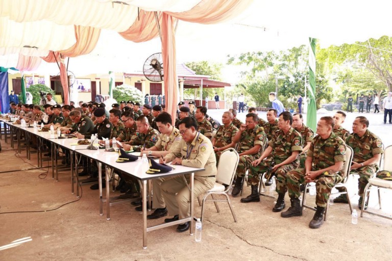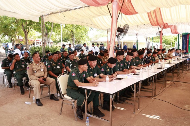នៅព្រឹកថ្ងៃទី២៧ ខែឧសភា ឆ្នាំ២០២៤ នេះ ឯកឧត្តមអភិសន្តិបណ្ឌិត ស សុខា ឧបនាយករដ្ឋមន្ត្រី រដ្ឋមន្ត្រីក្រសួងមហាផ្ទៃ និងជាប្រធានគណៈប្រតិភូ បានអញ្ជើញដឹកនាំកិច្ចប្រជុំពិនិត្យវឌ្ឍនភាពនៃការប្រយុទ្ធប្រឆាំងគ្រឿងញៀនខុសច្បាប់ នៅបញ្ជាការដ្ឋាន វរៈសេនានគរបាលការពារព្រំដែនគោក លេខ ៨០៧ ស្ថិតនៅភូមិសាមគ្គី ឃុំគោករមៀត ស្រុកថ្មពួក ក្នុងដំណើរទស្សនកិច្ចស្តីពីការពិនិត្យវឌ្ឍនភាព នៃការប្រយុទ្ធប្រឆាំងគ្រឿងញៀនឆ្លងដែនខុសច្បាប់ នៅខេត្តបន្ទាយមានជ័យ។