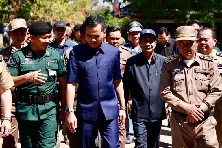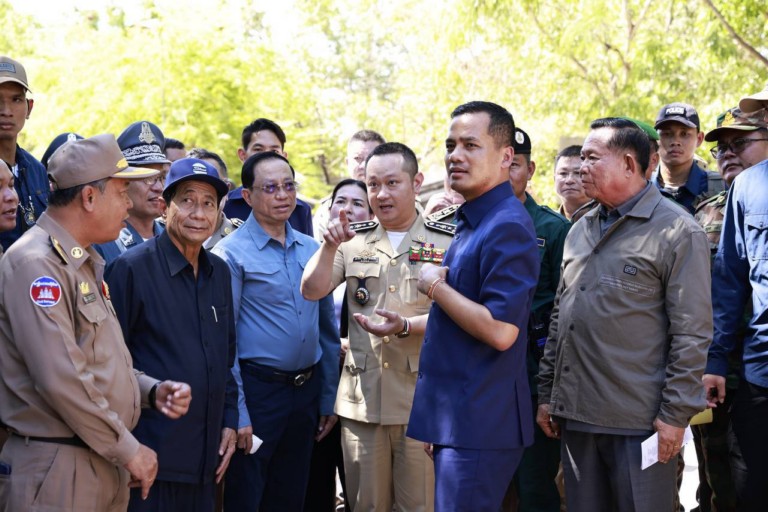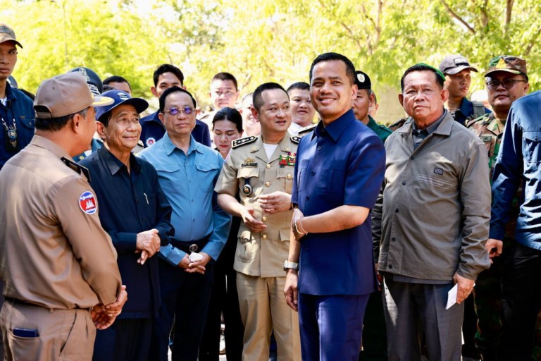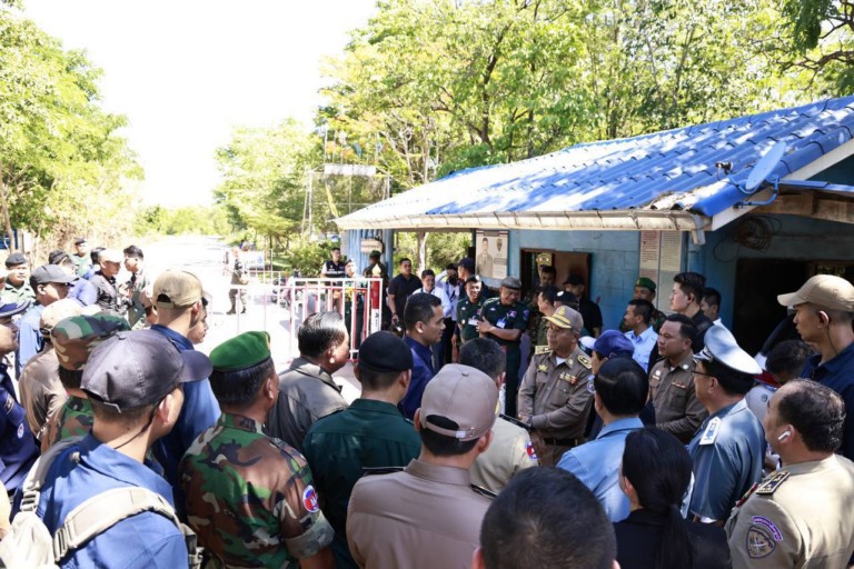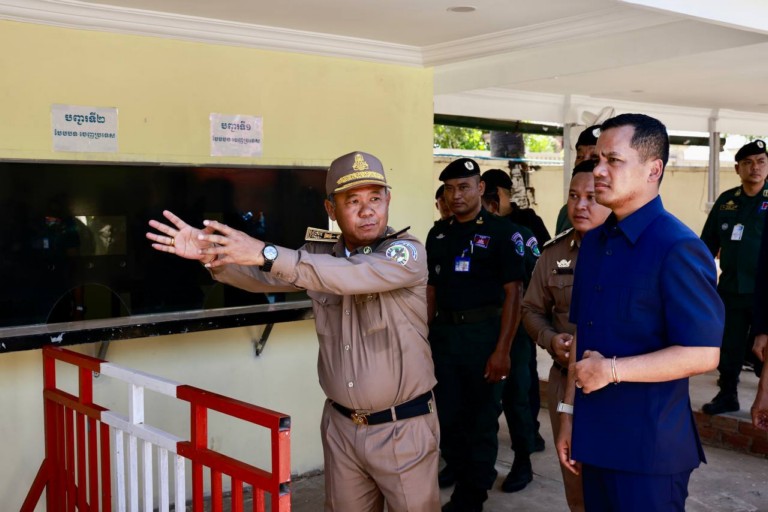 នៅព្រឹកថ្ងៃទី២៧ ខែឧសភា ឆ្នាំ២០២៤ នេះ ឯកឧត្តមអភិសន្តិបណ្ឌិត ស សុខា ឧបនាយករដ្ឋមន្ត្រី រដ្ឋមន្ត្រីក្រសួងមហាផ្ទៃ បានអញ្ជើញដឹកនាំគណៈប្រតិភូ ចុះពិនិត្យស្ថានភាពទីតាំងភូមិសាស្ត្រ និងការបំពេញការងាររបស់ថ្នាក់ដឹកនាំ និងមន្ត្រី នៃប៉ុស្តិ៍នគរបាលច្រកទ្វារតំបន់ បឹងត្រកួន ស្ថិតនៅភូមិបន្ទាយមានរិទ្ធ ឃុំគោករមៀត ស្រុកថ្មពួក ក្នុងដំណើរទស្សនកិច្ចស្តីពីការពិនិត្យវឌ្ឍនភាពនៃការប្រយុទ្ធប្រឆាំងគ្រឿងញៀនឆ្លងដែនខុសច្បាប់ នៅខេត្តបន្ទាយមានជ័យ។