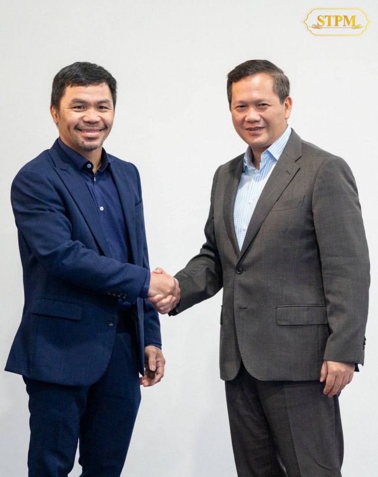 ​នា​រសៀល​ថ្ងៃ​ទី​៣០ ខែ​ឧសភា ឆ្នាំ​២០២៤ សម្តេច​មហា​បវរ​ធិបតី ហ៊ុន ម៉ា​ណែ​ត នាយករដ្ឋមន្ត្រី នៃ​ព្រះរាជាណាចក្រ​កម្ពុជា បានអនុញ្ញាត​ឱ្យ​លោក ម៉ា​នី ប៉ា​គី​អាវ (Manny Pacquiao) កំពូល​កីឡាករ​ប្រដាល់​កម្រិត​ពិភពលោក និង​ជា​អតីត​សមាជិក​ព្រឹទ្ធសភា នៃ​សាធារណរដ្ឋ​ហ្វីលីពីន ចូលជួប​សម្តែង​ការគួរសម និង​ពិភាក្សា​ការងារ នៅ​វិមាន​៧​មករា​។​