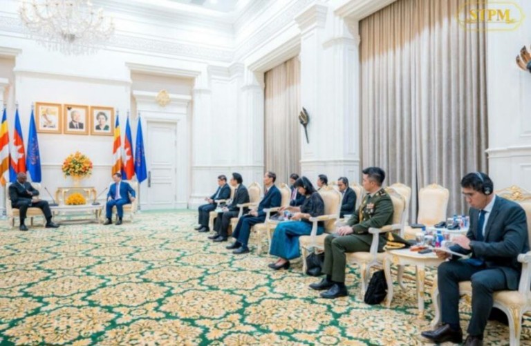 សម្ដេចធិបតី និងឯកឧត្តមរដ្ឋមន្ត្រីការពារជាតិ ក៏បានពិភាក្សា និងផ្លាស់ប្ដូរយោបល់គ្នាលើបញ្ហាសន្តិសុខ និងស្ថិរភាពក្នុងតំបន់ និងអន្តរជាតិ ដើម្បីចូលរួមក្នុងការកសាងសន្តិភាព ស្ថិរភាព សាមគ្គីភាព និងវិបុលភាពនៅក្នុងតំបន់ និងអន្តរជាតិ ក៏ដូចជាផ្ដល់នូវអត្ថប្រយោជន៍ទៅវិញទៅមករវាងប្រទេសទាំងពីរ។