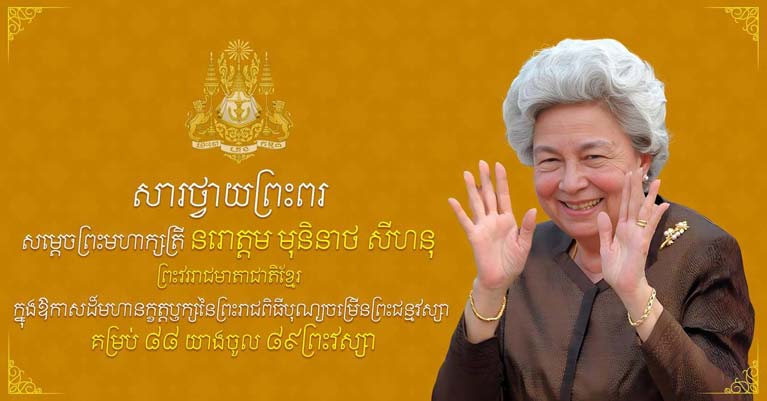 នៅក្នុងឱកាសដ៏មហានក្ខត្តឫក្ស ប្រកបដោយសិរីសួស្តី បវរថ្លៃថ្លាមហាប្រសើរនៃព្រះរាជពិធីបុណ្យចម្រើនព្រះជន្ម សម្តេចព្រះមហាក្សត្រី ព្រះវររាជមាតាជាតិខ្មែរ គម្រប់ ៨៨ព្រះវស្សា យាងចូល ៨៩ព្រះវស្សា ដែលនឹងប្រព្រឹត្តទៅនៅថ្ងៃទី១៨ ខែមិថុនា ឆ្នាំ២០២៤ ទូលព្រះបង្គំយើងខ្ញុំ សូមព្រះបរមរាជានុញ្ញាតអភិវន្ទលំឱនកាយវាចារចិត្តក្រាបបង្គំ សម្តែងនូវការគោរពកោតសរសើរ និងកត្តញ្ញូតាធម៌ដ៏ជ្រាលជ្រៅបំផុត ថ្វាយចំពោះ សម្តេចព្រះមហាក្សត្រី ព្រះវររាជមាតាជាតិខ្មែរ ដែលព្រះអង្គបានលះបង់ព្រះបញ្ញាញាណ ព្រះរាជសកម្មភាពដ៏ឧត្តុង្គឧត្តមថ្លៃថ្លាបំផុត ប្រកបដោយព្រះគុណធម៌ ព្រះមនុស្សធម៌ ក្នុងវិស័យអប់រំសិក្សាធិការ ព្រះពុទ្ធសាសនា សង្គមកិច្ច សុខុមាលភាព ជីវភាពរស់នៅរបស់ ប្រជាពលរដ្ឋ និងជាពិសេសព្រះរាជសកម្មភាព ជាព្រះប្រធានកិត្តិយសនៃកាកបាទក្រហមកម្ពុជា និងក្រុមប្រឹក្សាជាតិកម្ពុជា ដើម្បីស្ត្រី ដែលបានរួមចំណែកយ៉ាងធំធេង ក្នុងការលើកកម្ពស់ជីវភាពរស់នៅរបស់ប្រជាពលរដ្ឋ និងការលើកកម្ពស់តួនាទីស្ត្រីក្នុងសង្គម កម្ពុជានាពេលកន្លងមក។