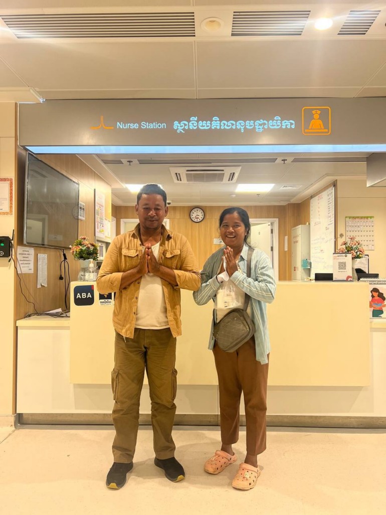 ក្រោយពីទទួលការពិនិត្យតាមដានយ៉ាងយកចិត្តទុជាមួយគ្រូពេទ្យឯកទេសបេះដូងរួចមក ប្អូនស្រីមានសេចក្តីត្រេកអរជាពន់ពេក ព្រមទាំងគោរពថ្លែងអំណរគុណ និងជូនពរសម្តេចមហាបវរធិបតី និងលោកជំទាវបណ្ឌិត ជាអនេក ។