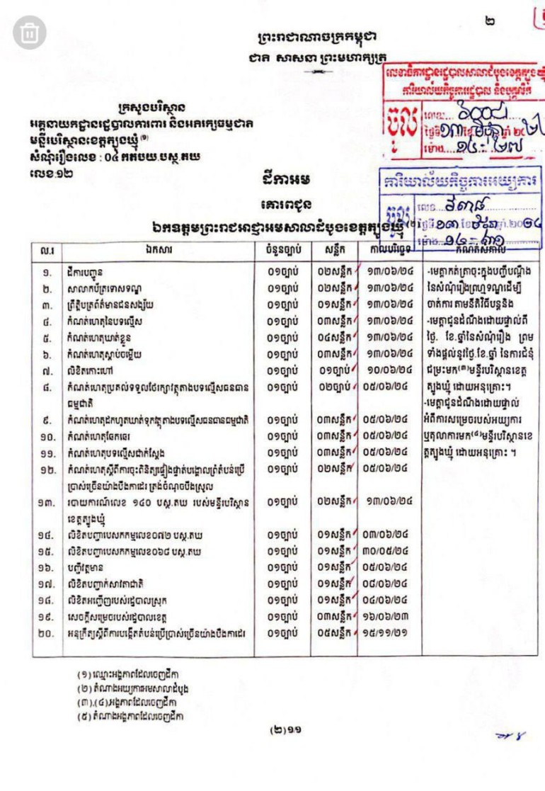 នៅថ្ងៃទី ១៤ ខែមិថុនា ឆ្នាំ ២០២៤ តុលាការខេត្តត្បូងឃ្មុំ បានបញ្ជូនជនល្មើសម្នាក់ទៅពន្ធានគារខេត្ត ឈ្មោះ យេប សុខក្រី អាយុ ៤២ ឆ្នាំ ជាប់ចោទពីបទកាប់គាស់ រុករានដុត ឆ្ការ ដីព្រៃយកធ្វើកម្មសិទ្ធិ ប្រព្រឹត្តនៅចំណុចក្នុងតំបន់ប្រើប្រាស់ច្រើនយ៉ាងបឹង បឹងស្រូល ស្ថិតនៅភូមិជំនីក ឃុំជំនីក ស្រុកក្រូចឆ្មារ ខេត្តត្បូងឃ្មុំ កាលពីថ្ងៃទី ៥ ខែមិថុនា ឆ្នាំ ២០២៤ ។