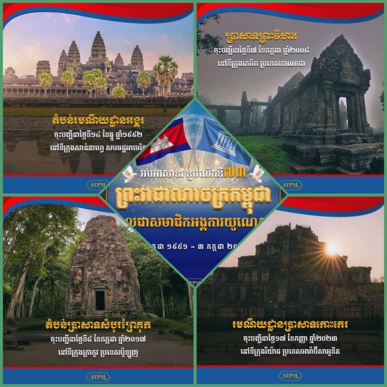 រាជធានីភ្នំពេញ៖ ចាប់តាំងពីប្រទេសកម្ពុជាបានចូលជាសមាជិករបស់អង្គការយូណេស្កូ (UNESCO) ព្រះរាជាណាចក្រកម្ពុជា បានចុះបញ្ជីនូវសម្បតិ្តបេតិកភណ្ឌរូបី ចំនួន ៤, សម្បតិ្តបេតិកភណ្ឌអរូបី ចំនួន ៦ និងបញ្ជីស្មារតីចងចាំនៃពិភពលោក ចំនួន ៣ ដើម្បីថែរក្សានូវទម្រង់ដើមនៃវប្បធម៌ ក៏ដូចជាមរតកឥតកាត់ថ្លៃដែលបានបន្សល់ទុកដោយដូនតាខ្មែរ ព្រមទាំងជាការចងចាំនូវប្រវត្តិសាស្ត្ររបស់កម្ពុជា ដោយក្នុងនោះរួមមាន៖