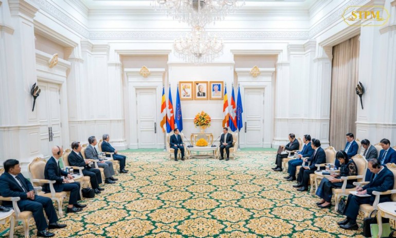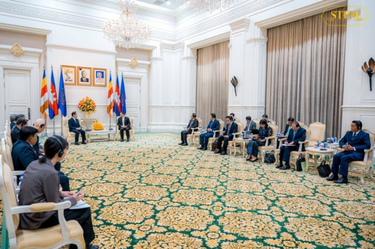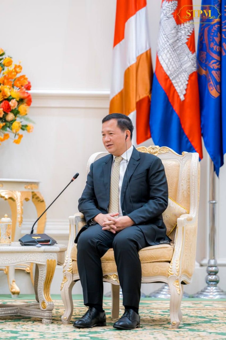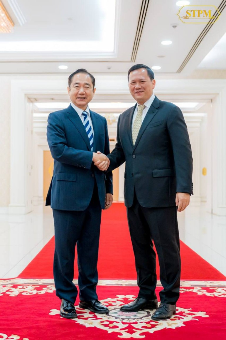 រាជធានីភ្នំពេញ ៖ ព្រឹកថ្ងៃព្រហស្បតិ៍ ទី១១ កក្កដា ២០២៤ សម្តេចធិបតី ហ៊ុន ម៉ាណែត នាយករដ្ឋមន្ត្រី នៃព្រះរាជាណាចក្រកម្ពុជា បានអនុញ្ញាតឲ្យ ឯកឧត្តមនាយឧត្តមសេនីយ៍ YAMAZAKI Koji ប្រធានអង្គការ JMAS និងជាអតីតអគ្គសេនាធិការចម្រុះកងទ័ពស្វ័យការពារជប៉ុន ជួបជួបសម្ដែងការគួរសម និងពិភាក្សាការងារនៅវិមានសន្តិភាព។