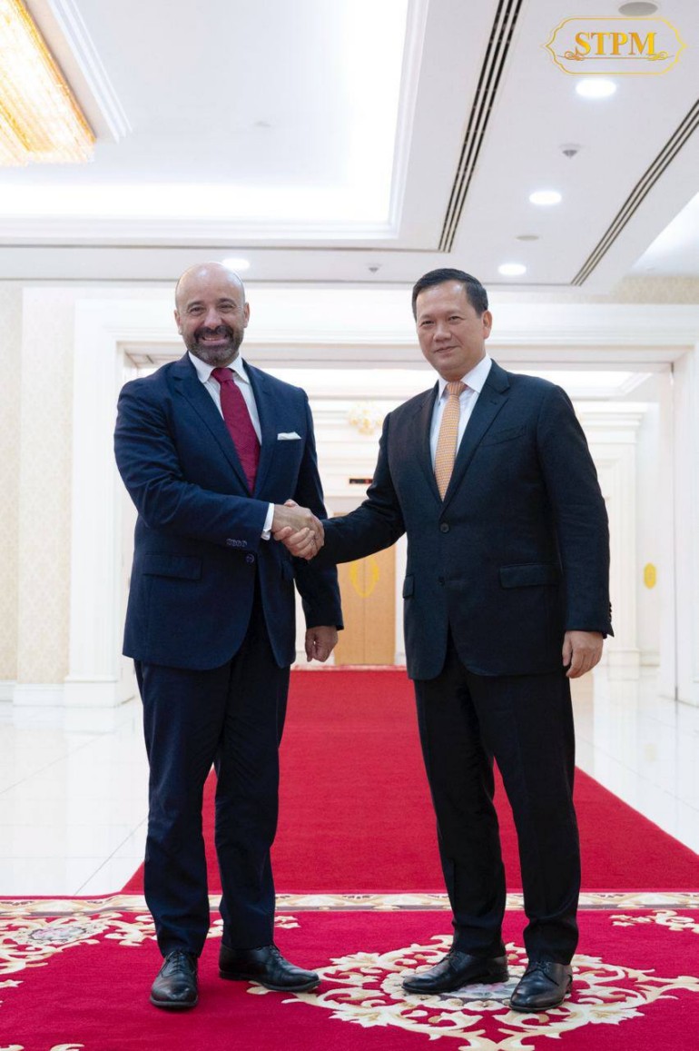 រាជធានីភ្នំពេញ ៖ រសៀលថ្ងៃអង្គារ ទី១៦ កក្កដា ២០២៤ សម្តេចមហាបវធិបតី ហ៊ុន ម៉ាណែត នាយករដ្ឋមន្ត្រីនៃព្រះរាជាណាចក្រកម្ពុជា អនុញ្ញាតឲ្យឯកឧត្តម Miguel De Serpa Soares អគ្គលេខាធិការរង ទទួលបន្ទុកកិច្ចការច្បាប់ និងជាទីប្រឹក្សាច្បាប់នៃអង្គការសហប្រជាជាតិ ក្នុងជំនួបសម្ដែងការគួរសម និងពិភាក្សាការងារនៅវិមានសន្តិភាព។