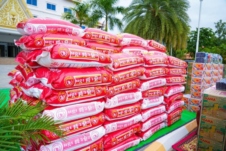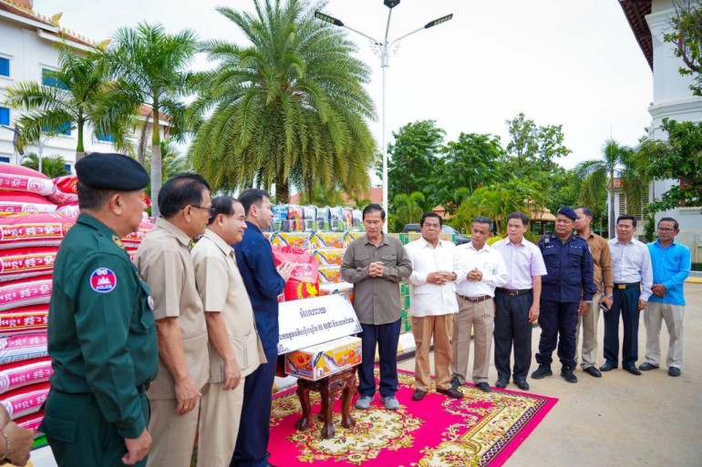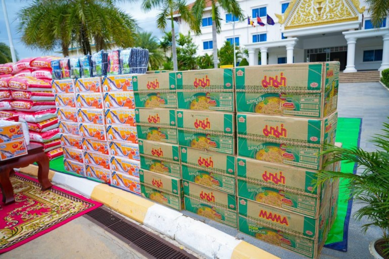 គ្រឿងឧបភោគ បរិភោគ និងសម្ភារៈ ដែលត្រូវប្រគល់ជូនរដ្ឋបាលខេត្តពោធិ៍សាត់ រួមមាន៖ អង្ករ៧តោន ត្រីខ៤០កេសធំ មី៣៥កេសធំ អាវភ្លៀង១០០កំប្លេរ និងតង់ធំ១ គិតជាទឹកប្រាក់សរុប ៤០លានរៀល។