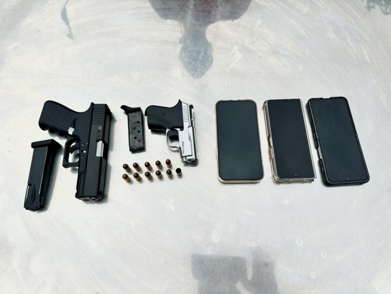 ដោយឃើញសភាពបែបនេះ មេការក្លឹបបានតាមអង្វរបុរសម្នាក់នោះ សុំឲ្យយកកាំភ្លើងទៅទុកក្នុងឡាន ស្រាប់តែបុរសនោះ បានបាញ់ឡើងលើ០១គ្រាប់ ដើម្បីសម្តែងឬទ្ធិអំណាចរបស់ខ្លួន ធ្វើឲ្យភ្ញៀវផ្អើលឈូរឆររត់ចេញក្រៅ ត្រូវបានក្រុមសន្តិសុខរាយការណ៍ជូនអាវុធហត្ថខណ្ឌចំការមន ចុះអន្តរាគមន៍និងឃាត់ខ្លួនជនសង្ស័យ ដើម្បីយកទៅអនុវត្តតាមនិតិវិធី ព្រមទាំងដកហូតអាវុធខ្លីបាន ០២ដើម ដោយមួយដើម ម៉ាក GLOCK19 ជាអាវុធដែលជនសង្ស័យ កាន់ធ្វើសកម្មភាពបាញ់សម្ញែង និងមួយដើមទៀត ម៉ាក EKOL VOLGA សមត្ថកិច្ចឆែកឃើញក្នុងរថយន្តរបស់ជនសង្ស័យ។