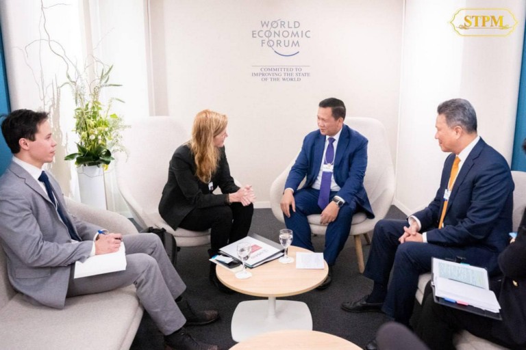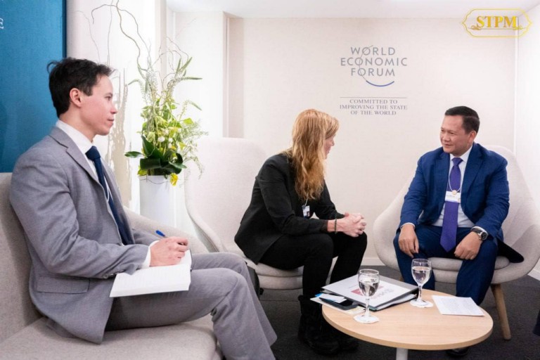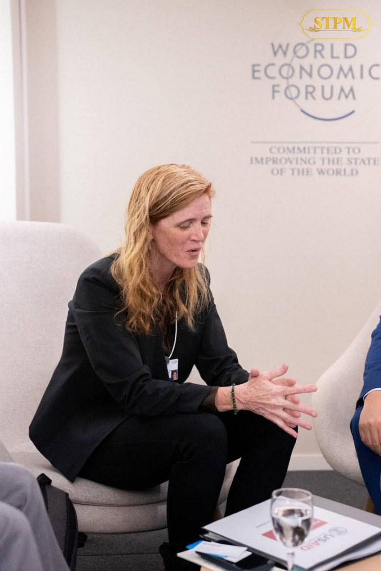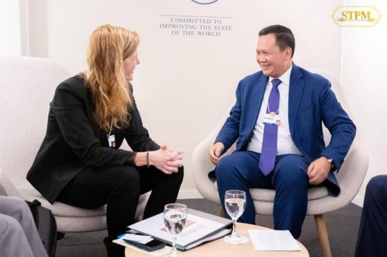 ទីក្រុងដាវ៉ូស សហព័ន្ធស្វីស រសៀលថ្ងៃពុធ ៧កើត ខែបុស្ស ឆ្នាំថោះ បញ្ចស័ក ពុទ្ធសករាជ ២៥៦៧ ត្រូវនឹងថ្ងៃទី១៧ ខែមករា ឆ្នាំ២០២៤ សម្ដេចមហាបវរធិបតី ហ៊ុន ម៉ាណែត នាយករដ្ឋមន្ត្រី នៃព្រះរាជាណាចក្រកម្ពុជា បានអនុញ្ញាតឱ្យ លោកជំទាវ Samantha Power ប្រធានគ្រប់គ្រងទីភ្នាក់ងារសហរដ្ឋអាមេរិកសម្រាប់ការអភិវឌ្ឍអន្តរជាតិ (USAID) ចូលជួបសម្តែងការគួរសម និងពិភាក្សាការងារ ក្នុងឱកាសអញ្ជើញចូលរួមក្នុងវេទិកាសេដ្ឋកិច្ចពិភពលោក ឆ្នាំ២០២៤ នៅទីក្រុងដាវ៉ូស សហព័ន្ធស្វីស។