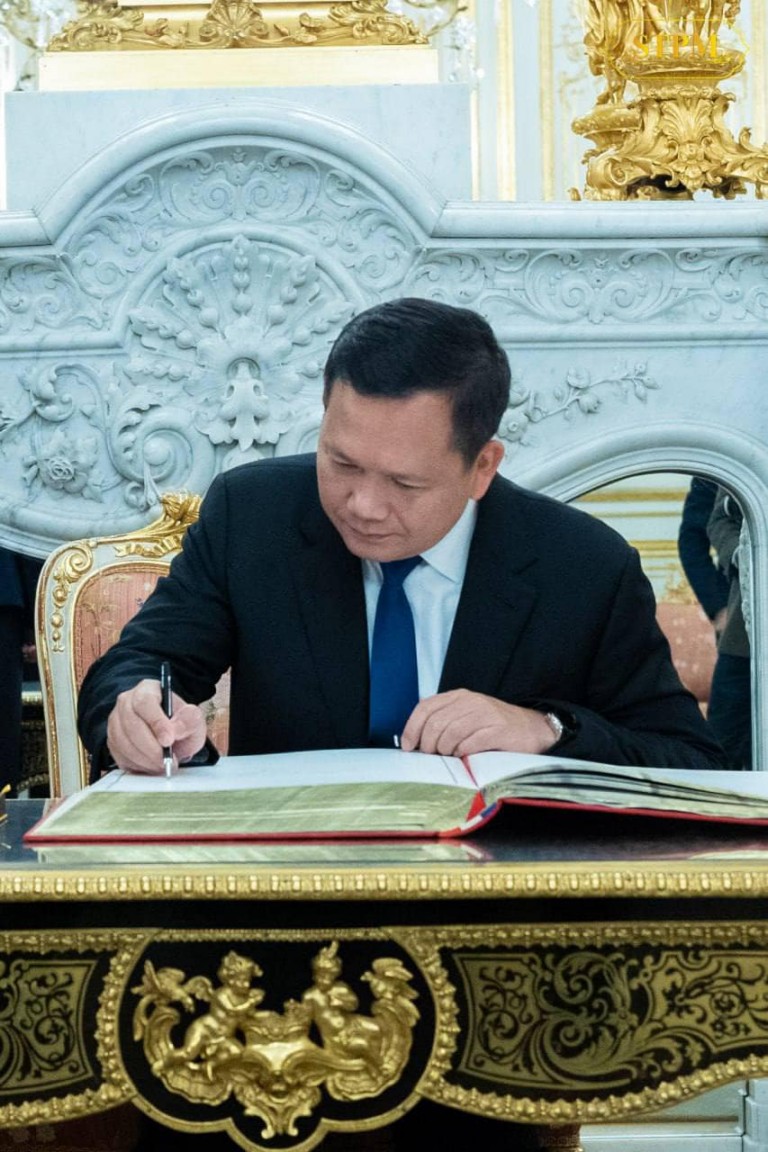 ជាកិច្ចចាប់ផ្តើម លោកជំទាវ Yaël BRAUN-PIVET ប្រធានរដ្ឋសភាបារាំង បានសម្តែងនូវកិច្ចស្វាគមន៍ចំពោះដំណើរទស្សនកិច្ចផ្លូវការរបស់ សម្តេចធិបតី នៅលើទឹកដីបារាំង និងបានវាយតម្លៃខ្ពស់ចំពោះការសម្រេចជ្រើសរើសរបស់សម្តេចធិបតី យកប្រទេសបារាំងជាប្រទេសទី១ ក្នុងចំណោមបណ្តាប្រទេសនៃទ្វីបអឺរ៉ុប ដើម្បីបំពេញទស្សនកិច្ចផ្លូវការក្នុងនាមប្រមុខរាជរដ្ឋាភិបាលកម្ពុជា ស្របពេលដែលប្រទេសបារាំង-កម្ពុជា កំពុងមានទំនាក់ទំនងកិច្ចសហប្រតិបត្តិការល្អលើគ្រប់វិស័យ ។