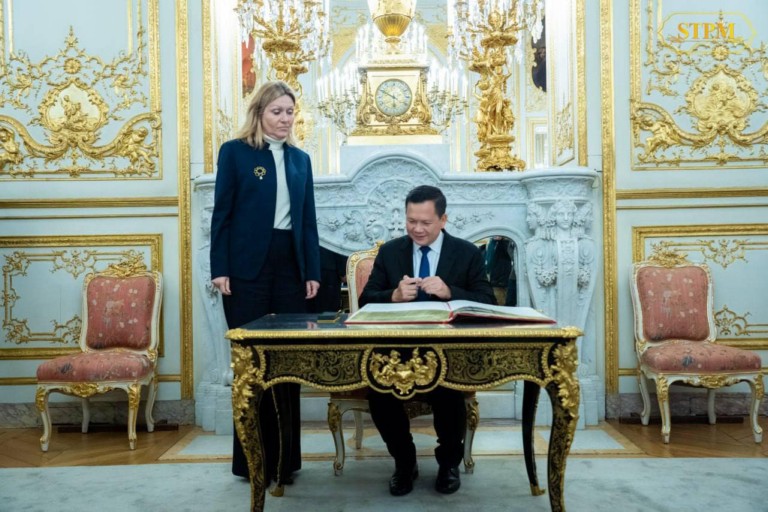 នារសៀលថ្ងៃទី១៨ ខែមករា ឆ្នាំ២០២៤ សម្តេចមហាបវរធិបតី ហ៊ុន ម៉ាណែត នាយករដ្ឋមន្ត្រី នៃព្រះរាជាណាចក្រកម្ពុជា បានអញ្ជើញជួបសម្តែងការគួរសម និងពិភាក្សាការងារ ជាមួយនឹងលោកជំទាវ Yaël BRAUN-PIVET ប្រធានរដ្ឋសភាបារាំង ក្នុងឱកាសនៃដំណើរទស្សនកិច្ចផ្លូវការនៅទីក្រុងប៉ារីស សាធារណរដ្ឋបារាំង ។