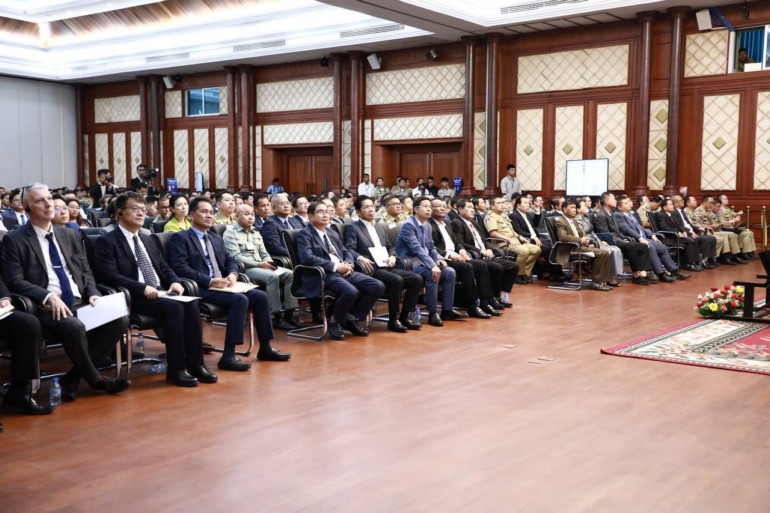 ការថ្លែងរបស់ឯកឧត្តមអភិសន្តិបណ្ឌិត ស សុខា បានធ្វើឡើងក្នុងកម្មវិធីសិក្ខាសាលាផ្សព្វផ្សាយ អំពីការប្រើប្រាស់ប្រព័ន្ធអេឡិចត្រូនិកសលាកបត្រចូលព្រះរាជាណាចក្រកម្ពុជា Cambodia e-Arrival រៀបចំនៅទីស្ដីការក្រសួងមហាផ្ទៃ នារសៀលថ្ងៃទី៩ ខែសីហា ឆ្នាំ២០២៤ ដោយមានការចូលរួមពីឯកឧត្តម សុខ សុកេន រដ្ឋមន្ត្រីក្រសួងទេសចរណ៍ តំណាងក្រសួងសុខាភិបាល ក្រសួងសេដ្ឋកិច្ច និងហិរញ្ញវត្ថុ ក្រសួង ស្ថាប័នពាក់ព័ន្ធរបស់រាជរដ្ឋាភិបាល តំណាងស្ថានទូតបរទេសនានាប្រចាំនៅកម្ពុជា ក្រុមហ៊ុនគ្រប់គ្រងអាកាសយានដ្ឋាន បណ្ដាទីភ្នាក់ងារទេសចរណ៍ ព្រមទាំងថ្នាក់ដឹកនាំនិងមន្ត្រីតាមបណ្ដាច្រកទ្វារព្រំដែនគោក និងអាកាសជាច្រើនរូប។