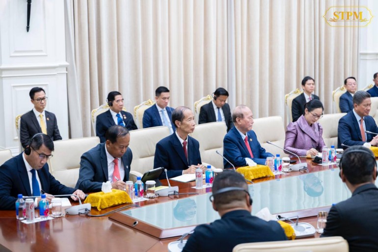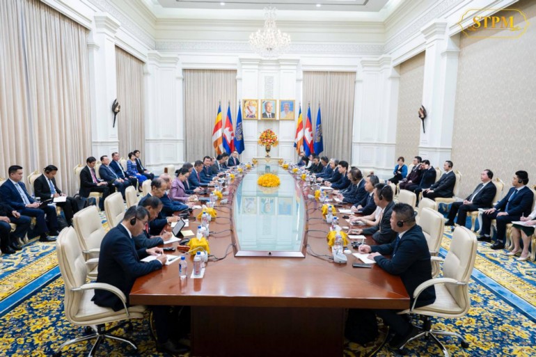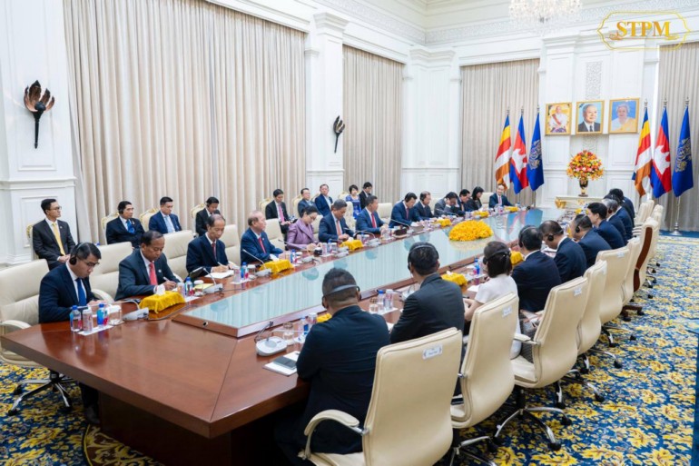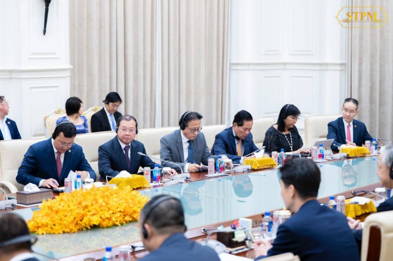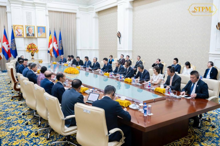 ភ្នំពេញ ៖ នាព្រឹកថ្ងៃទី ១៣ សីហា ឆ្នាំ ២០២៤ សម្តេចធិបតី ហ៊ុន ម៉ាណែត នាយករដ្ឋមន្ត្រី នៃព្រះរាជាណាចក្រកម្ពុជា បានអនុញ្ញាតឲ្យ លោក Wen Zhan Bin លេខាគណៈកម្មាធិការបក្ស នៃទីក្រុងសានថូវ ខេត្តក្វាងតុង សាធារណរដ្ឋប្រជាមានិតចិន និងគណៈប្រតិភូក្រុមហ៊ុនចំនួន ០៩ ចូលជួប និងពិភាក្សាការងារ នៅវិមានសន្តិភាព ។