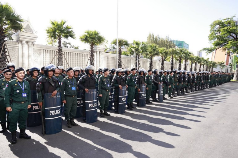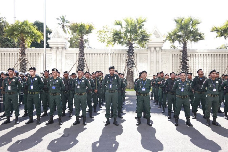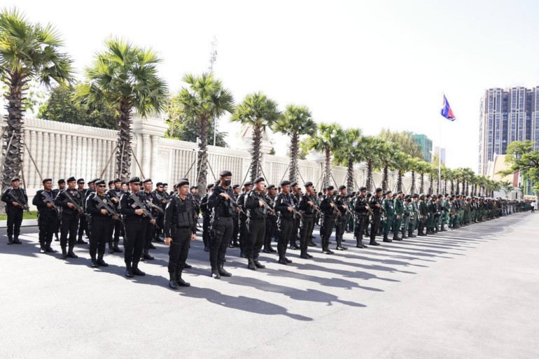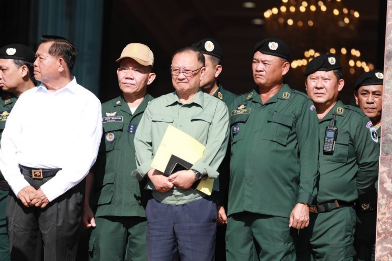 ភ្នំពេញ ៖ ឯកឧត្តមអភិសន្តិបណ្ឌិត ស សុខា ឧបនាយករដ្ឋមន្ត្រី រដ្ឋមន្ត្រីក្រសួងមហាផ្ទៃ បានអញ្ជើញជួបសំណេះសំណាលជាមួយកងកម្លាំងជួរមុខការពារសន្តិសុខ សណ្តាប់ធ្នាប់ នៃអង្គភាពតម្រួតបទបញ្ជា នាយកដ្ឋាននគរបាលការពារ និងអង្គភាពអន្តរាគមន៍ នៃអគ្គស្នងការដ្ឋាននគរបាលជាតិ កាលពីថ្ងៃទី១៨ ខែសីហា ឆ្នាំ២០២៤ នេះ នៅបរិវេណទីស្តីការក្រសួងមហាផ្ទៃ។
