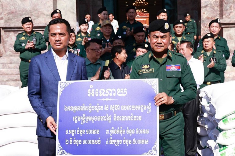 ក្នុងឱកាសនោះ ឯកឧត្តមអភិសន្តិបណ្ឌិត ក៏បានឧបត្ថម្ភនូវអង្ករ ចំនួន ១០តោន មី ចំនួន ១០០កេសធំ ត្រីខកំប៉ុង ចំនួន ៥០កេស និងទឹកក្រូច ចំនួន ៥០០កេស ជូនដល់កងកម្លាំងផងដែរ។