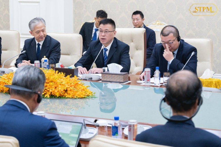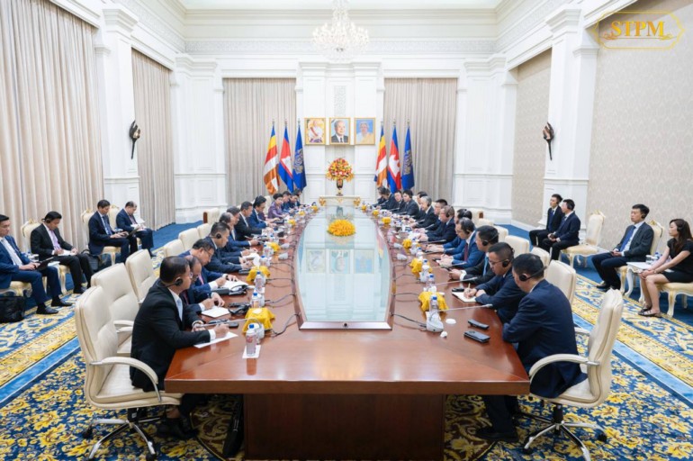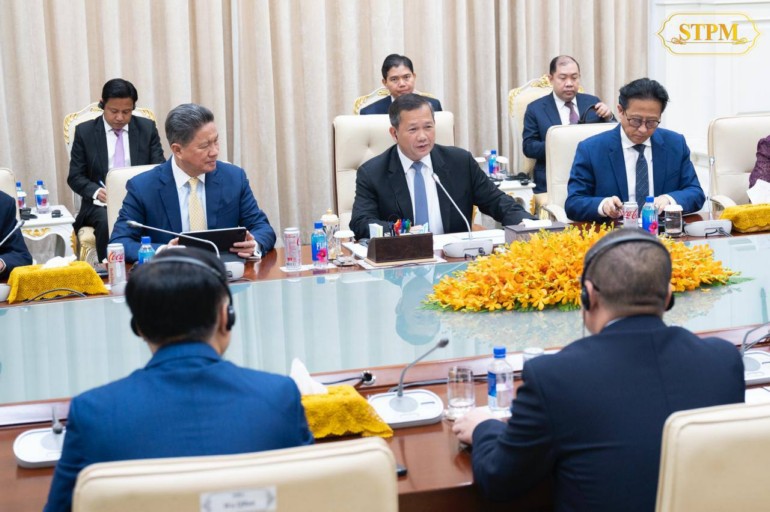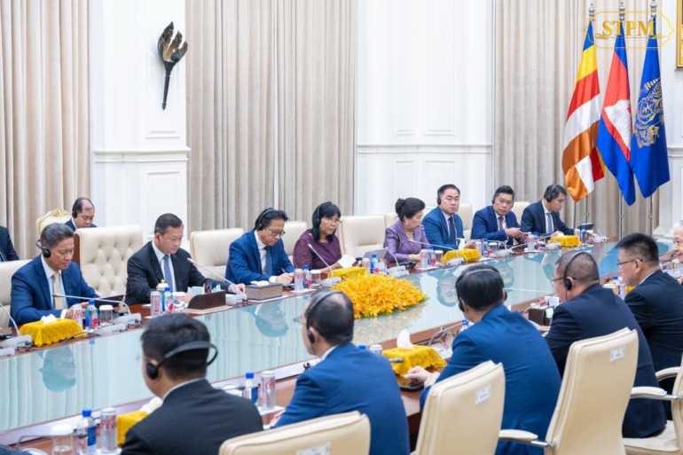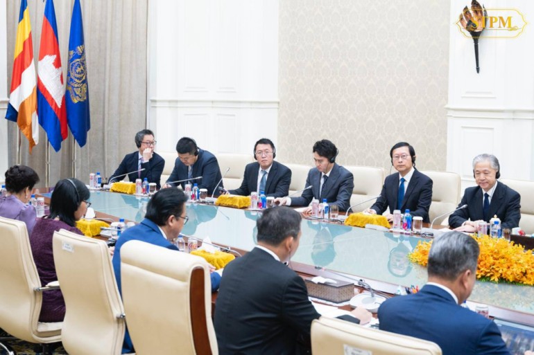 រាជធានីភ្នំពេញ ៖ កាលពីអង្គារ ទី២០ សីហា ២០២៤ សម្តេចធិបតី ហ៊ុន ម៉ាណែត នាយករដ្ឋមន្ត្រី នៃព្រះរាជាណាចក្រកម្ពុជា បានទទួលជួប ជាមួយ ប្រតិភូក្រុមហ៊ុនវិនិយោគចិន តំណាងដោយ លោក Zhao Yudong ប្រធានក្រុមហ៊ុន Everbright Group Everbright Sunshine Asset Management Co.,Ltd ក្នុងជំនួបសម្ដែងការគួរសម និងពិភាក្សាការងារនៅវិមានសន្តិភាព។
