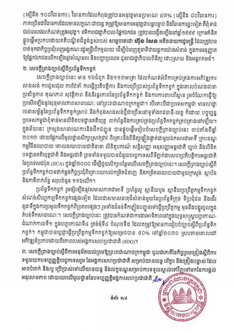 ទី២. ការពិនិត្យ និងសម្រេចលើ សេចក្តីព្រាងច្បាប់ស្តីពីប្រព័ន្ធទឹកកខ្វក់។