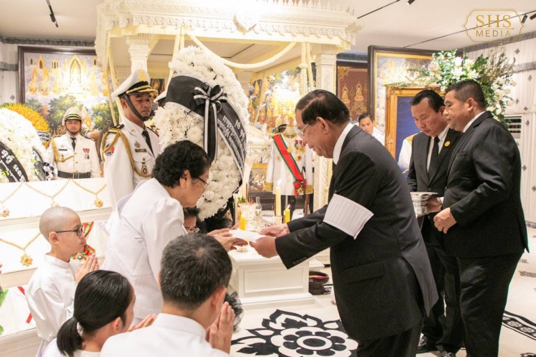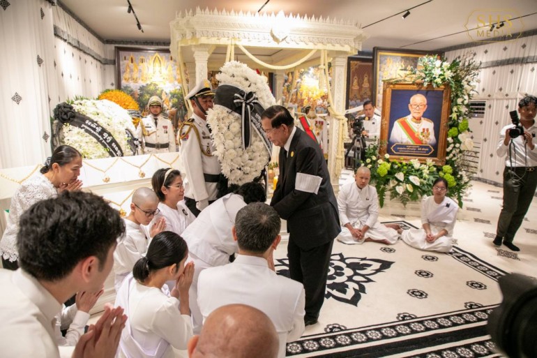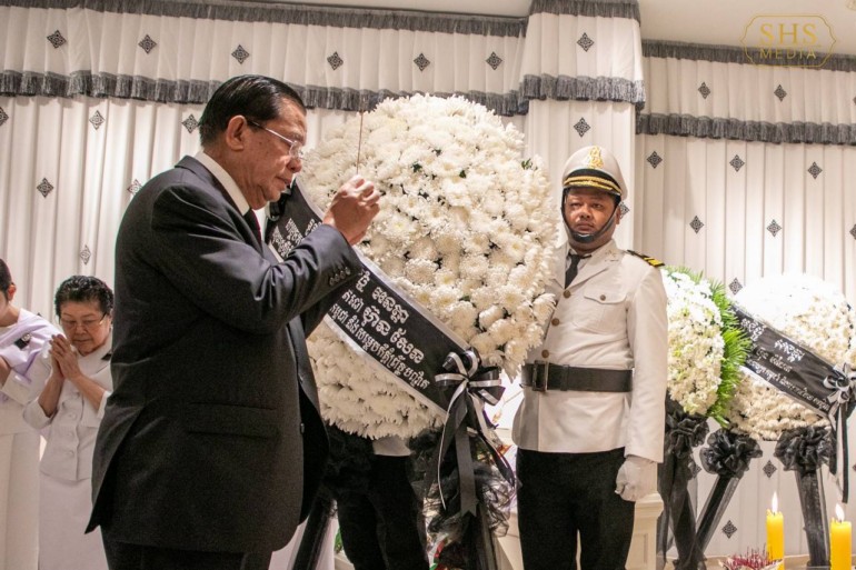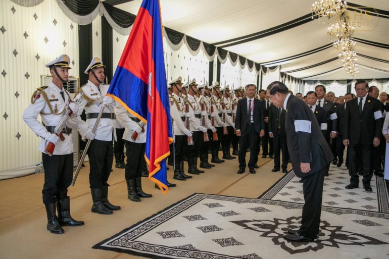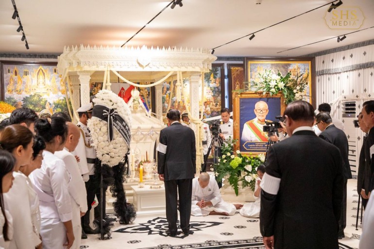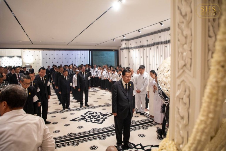 (ភ្នំពេញ) ៖ នៅព្រឹកថ្ងៃទី ០៣ ខែកញ្ញា ឆ្នាំ២០២៤ សម្ដេចអគ្គមហាសេនាបតីតេជោ ហ៊ុន សែន ប្រមុខរដ្ឋស្តីទី នៃព្រះរាជាណាចក្រកម្ពុជា បានដឹកនាំគណៈប្រតិភូជាន់ខ្ពស់ព្រឹទ្ធសភា នៃព្រះរាជាណាចក្រកម្ពុជា ចូលរួមគោរពវិញ្ញាណក្ខន្ធសពសម្តេចចៅហ្វាវាំង វរវៀងជ័យ អធិបតីស្រឹង្គារ គង់ សំអុល នៅគេហដ្ឋាននៃសព ស្ថិតនៅផ្ទះលេខ៨៣ ផ្លូវសុកហុក (១០៧) កែងនឹងវិថីហ្សូសិបប្រូសទីតូ (២១៤) សង្កាត់បឹងព្រលឹត ខណ្ឌ៧មករា រាជធានីភ្នំពេញ។