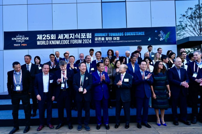 ថ្នាក់ដឹកនាំ នៃវេទិកាចំណេះដឹងពិភពលោក (WKF) នាយកប្រតិបត្តិក្រុមហ៊ុន Maekyung និងអភិបាលក្រុងអ៊ីនឆន់ សាធារណរដ្ឋកូរ៉េ បានសំដែងនូវការស្វាគមន៍ និងវាយតម្លៃខ្ពស់ចំពោះបណ្តាថ្នាក់ដឹកនាំ នៃមជ្ឈដ្ឋានរដ្ឋាភិបាល អ្នកនយោបាយ អ្នកសិក្សាអប់រំ សាជីវកម្ម និងវិស័យផ្សេងៗ ជុំវិញពិភពលោក ដែលមានវត្តមានអញ្ជើញចូលរួមវេទិកាចំណេះដឹងពិភពលោក (World Knowledge Forum) លើកទី២៥ ក្រោមមូលបទ មាគ៌ាឆ្ពោះទៅរកសហត្ថិភាព (Journey Towards Coexistence) ក្នុងគោលបំណងចែករំលែកចំណេះដឹង ដើម្បីរួមចំណែកជំរុញកំណើនសេដ្ឋកិច្ច និងវិបុលភាពសកលប្រកបដោយតុល្យភាព៕