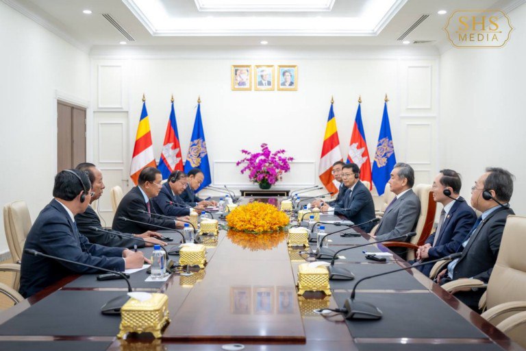 នៅវិមាន៧មករា នារសៀល ថ្ងៃចន្ទ ១៤កើត ខែចេត្រ ឆ្នាំរោង ឆស័ក ព.ស.២៥៦៧ ត្រូវនឹងថ្ងៃទី២២ ខែមេសា ឆ្នាំ២០២៤ សម្ដេចអគ្គមហាសេនាបតីតេជោ ហ៊ុន សែន ប្រធានព្រឹទ្ធសភា និងជាប្រធានគណបក្សប្រជាជនកម្ពុជា បានទទួលជួបពិភាក្សាការងារជាមួយឯកឧត្តម វ៉ាង យី (Wang Yi) សមាជិកការិយាល័យនយោបាយ និង ជាប្រធានការិយាល័យគណៈកម្មការកិច្ចការបរទេស នៃគណៈកម្មាធិការមជ្ឈិមបក្សកុម្មុយនីស្តចិន និងជារដ្ឋមន្ត្រីការបរទេសនៃសាធារណរដ្ឋប្រជាមានិតចិន ក្នុងឱកាសដែលឯកឧត្តមអញ្ជើញមកបំពេញទស្សនកិច្ចនៅព្រះរាជាណាចក្រកម្ពុជា។