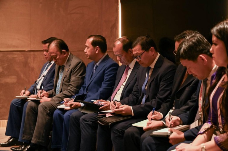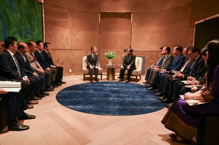 ជាកិច្ចចាប់ផ្ដើម សម្ដេចតេជោបានស្វាគមន៍ ចំពោះគណៈប្រតិភូនៃក្រុមហ៊ុន Mugungwha Trust Co., Ltd. ដោយសង្ឃឹមថា ក្រុមហ៊ុននេះនឹងទៅស្វែងយល់ និងរកឱកាសវិនិយោគនៅកម្ពុជា។