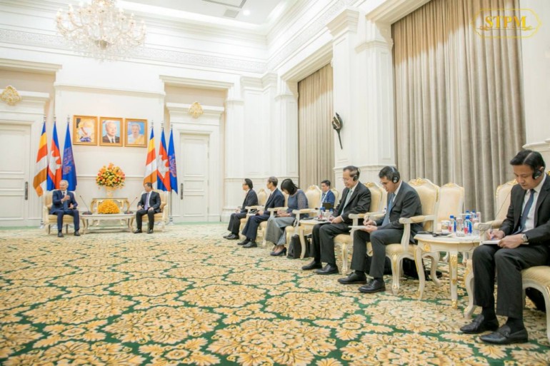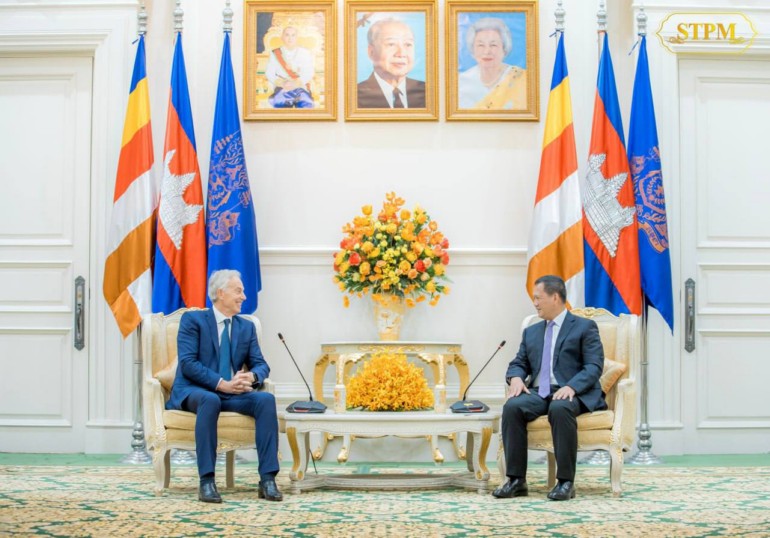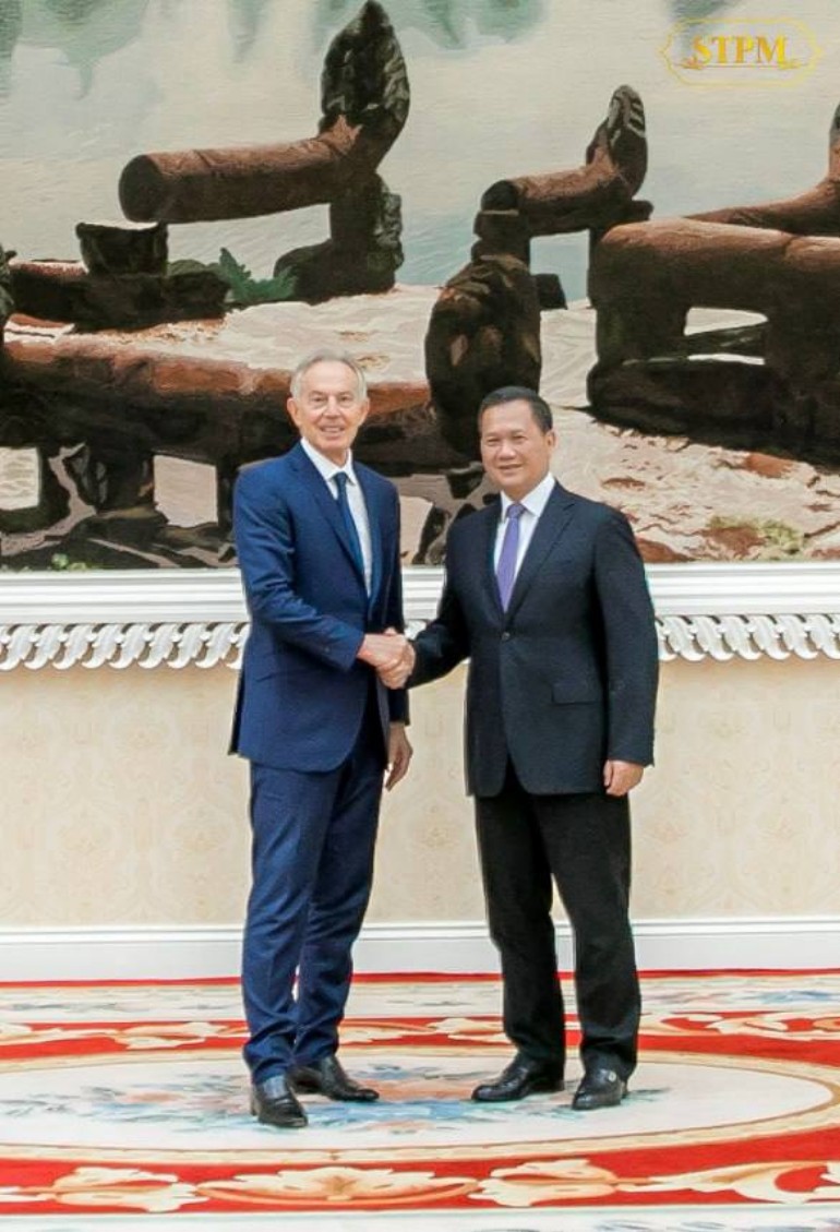 ក្នុងឱកាសនៃជំនួប ឯកឧត្តម Tony Blair អតីតនាយករដ្ឋមន្ត្រីនៃចក្រភពអង់គ្លេស និងជាប្រធានប្រតិបត្តិនៃវិទ្យាស្ថាន Tony Blair សម្រាប់ការផ្លាស់ប្តូរសកល (TBI) ដែលមានសាខានៅតាមបណ្ដាប្រទេសជាច្រើនជុំវិញពិភពលោក រួមទាំងតំបន់អាស៊ាន បានកោតសរសើរការរីកចម្រើនគួរឱ្យកត់សម្គាល់នៅកម្ពុជា និងបានវាយតម្លៃខ្ពស់ចំពោះការដាក់ចេញនូវយុទ្ធសាស្ត្របញ្ចកោណ-ដំណាក់កាល១ ប្រកបដោយចក្ខុវិស័យវែងឆ្ងាយ របស់រាជរដ្ឋាភិបាលកម្ពុជា។ ឯកឧត្តមបានជម្រាបជូនសម្ដេចធិបតីអំពីសកម្មភាពការងាររបស់វិទ្យាស្ថានTony Blair ដែលជាវិទ្យាស្ថានស្រាវជ្រាវយុទ្ធសាស្ត្រ និងមានបេសកកម្មផ្ដល់ទស្សនទានផ្នែកគោលនយោបាយ និងយុទ្ធសាស្ត្រអភិវឌ្ឍ ដល់បណ្តារដ្ឋាភិបាលនៅលើពិភពលោក។ ឯកឧត្តម Tony Blair បានបង្ហាញអំពីបំណងនៃការផ្តល់កិច្ចសហការជួយរាជរដ្ឋាភិបាលកម្ពុជា ក្នុងការចូលររួមចំណែកសម្រេចបាននូវគោលដៅជាយុទ្ធសាស្ត្ររបស់កម្ពុជា។