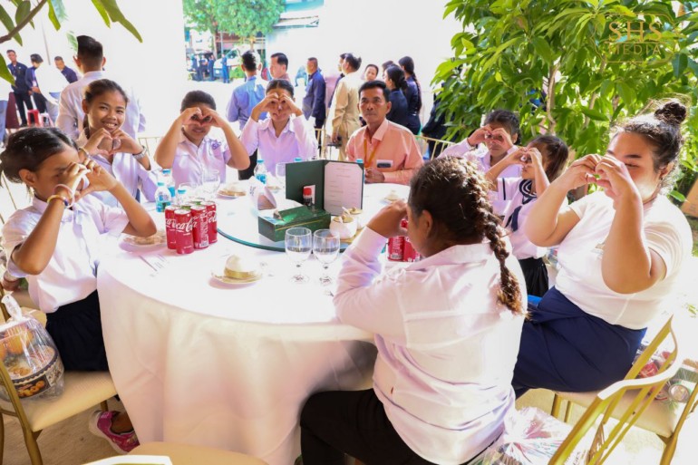 ក្នុងពិធីចុះសួរសុខទុក្ខ និងសំណេះសំណាលនេះបានប្រព្រឹត្តទៅ ក្នុងឱកាសមុនពិធីបុណ្យភ្ជុំបិណ្ឌមកដល់។ សម្តេចទាំងទ្វេក៏បានអញ្ជើញរៀបចំអាហារថ្ងៃត្រង់មួយពេលដល់ចៅៗ កូនៗ ក្មួយៗ សិស្សានុសិស្ស និងសម្ដេចទាំងទ្វេក៏បានអញ្ជើញពិសាបាយនៅមជ្ឈមណ្ឌលបណ្ដុះបណ្ដាលវិជ្ជាជីវៈ និងស្ដារនីតិសម្បទាយុវនារី អាហ្វេស៊ីប (AFESIP) មួយពេលផងដែរ។