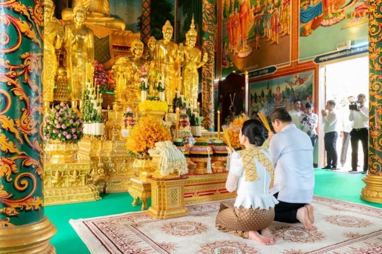 បន្ទាប់ពីបានអញ្ជើញរាប់បាត្រ បង្សុកូល វេរប្រគេនចំពោះព្រះសង្ឃ នូវបច្ច័យ ទេយ្យទាន សម្ភារ គ្រឿងឧបភោគ បរិភោគ រួចហើយនោះ សម្តេចតេជោ ហ៊ុន សែន និងសម្តេចកិត្តិព្រឹទ្ធ បណ្ឌិត រួមជាមួយនឹងមន្ត្រីអ្នកមុខអ្នកការជាពុទ្ធបរិស័ទ បានអញ្ជើញទៅថ្វាយទៀនធូប ផ្កាភ្ញី ចំពោះ ព្រះពុទ្ធបដិមា ឧទ្ទិសកុសល ផលបុណ្យចំពោះព្រះរតត្រៃយ៍ ជាពិសេសឧទ្ទិសដល់ដួងវិញ្ញាណក្ខន្ធ អតីតព្រះមហាក្សត្រ ព្រះបាទអង្គឌួង លើទួលព្រះវិហារចាស់ និងអញ្ជើញ ថ្វាយទៀនធូប ផ្កាភ្ញី នៅលើព្រះវិហារថ្មី និងបានអញ្ជើញបន្តទៅគោរពរូបសំណាក វីរបុរសអ្នកស្នេហាជាតិ ដែលមាន គុណបំណាច់ក្នុងការការពារ ជាតិមាតុភូមិ ។