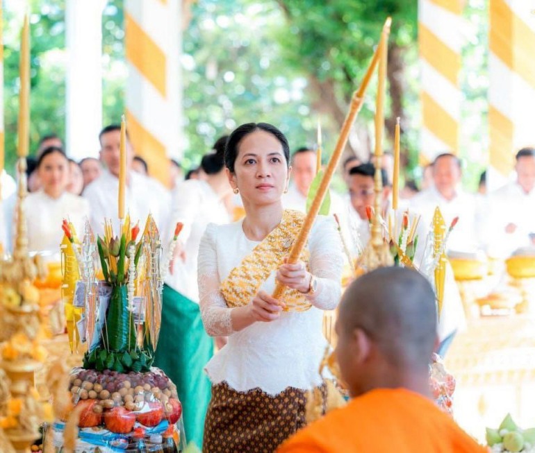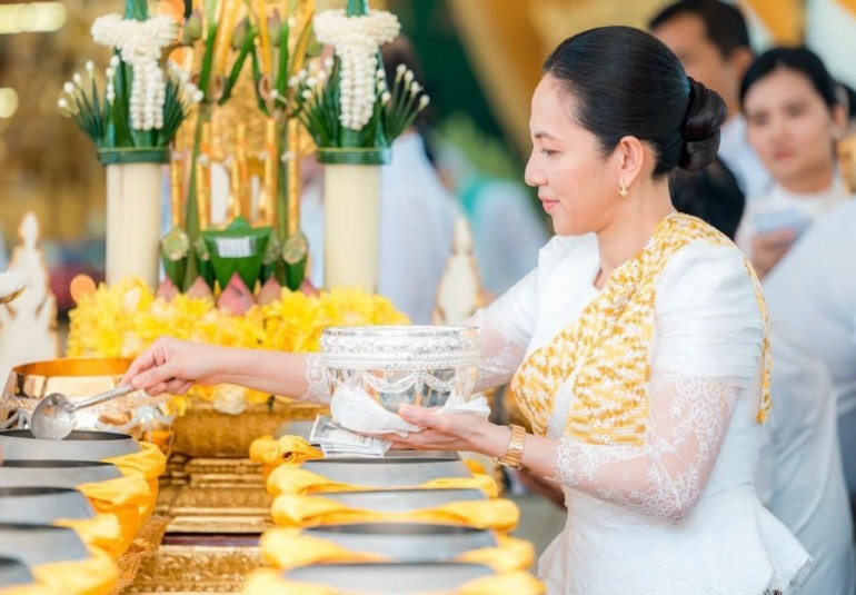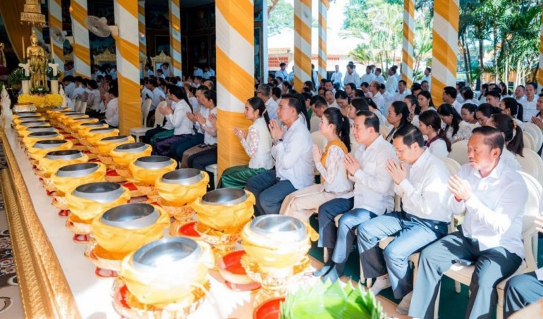 ក្នុងពិធីបុណ្យភ្ជុំនាព្រឹកមិញនេះ សម្តេចមហាបវរធិបតី និងលោកជំទាវបណ្ឌិត បាននាំយកនូវគ្រឿងសក្ការៈបូជា មានទៀនធូប ផ្កាភ្ញី សម្រាប់ បូជាចំពោះព្រះពុទ្ធអង្គ និងព្រះរតនត្រ័យ និងនាំយកនូវទេយ្យទាន ជាគ្រឿងឧបភោគបរិភោគ និងបច្ច័យ ប្រគេនព្រះសង្ឃ ព្រមទាំងរាប់បាត្រ បង្សុកូល ដើម្បីឧទ្ទិសមគ្គផល ជូនចំពោះ បុព្វការីជន មានមាតាបិតា ជីដូនជីតា ញាតិកាទាំង៧សន្តាន ដែលបានធ្វើមរណកាលទៅហើយ ជាពិសេសឧទ្ទិសចំពោះវិញ្ញាណក្ខន្ធ អ្នកឧកញ៉ាមហាភក្តី សប្បុរិសភោគាធិបតី ហ៊ុន នាង មហាឧបាសិកា ឌី ប៉ុក មហាឧបាសក លីន គ្រី និងអ្នកឧកញ៉ាព្រឹទ្ធមហាឧបាសិកាធម្មញ្ញាណវិវឌ្ឍនា ប៊ុន ស៊ាងលី។