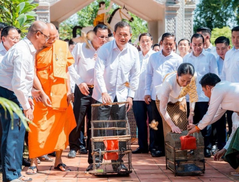 ខេត្តកំពង់ស្ពឺ ៖ នៅថ្ងៃពុធ ១៥រោច ខែភទ្របទ ឆ្នាំរោង ឆស័ក ពុទ្ធសករាជ ២៥៦៨ ត្រូវនឹងថ្ងៃទី២ ខែតុលា ឆ្នាំ២០២៤នេះ សម្តេចមហាបវរធិបតី ហ៊ុន ម៉ាណែត នាយករដ្ឋមន្ត្រីកម្ពុជា និងលោកជំទាវបណ្ឌិត ពេជ ចន្ទមុន្នី ហ៊ុនម៉ាណែត ព្រមទាំងសមាជិក សមាជិការាជរដ្ឋាភិបាលកម្ពុជា បានអញ្ជើញចូលរួមបុណ្យភ្ជុំបិណ្ឌ នៅវត្តហរិរក្សរាជិនី ហៅវត្តវាំងចាស់ ស្ថិតនៅក្រុងឧដុង្គម៉ែជ័យ ខេត្តកំពង់ស្ពឺ។