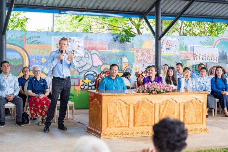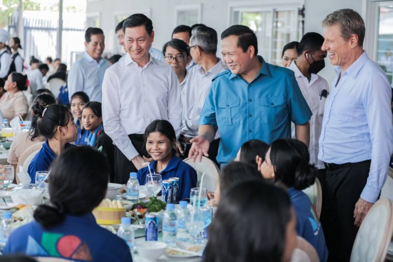 នាព្រឹកថ្ងៃទី ១៧ ខែតុលា ឆ្នាំ ២០២៤ សម្ដេចធិបតី ហ៊ុន ម៉ាណែត នាយករដ្ឋមន្ត្រីនៃកម្ពុជា និងលោកជំទាវបណ្ឌិត ពេជ ចន្ទ មុន្នី ហ៊ុនម៉ាណែត បានអញ្ជើញជួបសំណេះសំណាល ពិសារអាហារសាមគ្គីជាមួយ លោកតា លោកយាយ និងសិស្សានុសិស្ស នៃអង្គការមូលនិធិកុមារកម្ពុជា (CCF) និងអង្គការដើម្បីភាពញញឹមនៃកុមារ (PSE) ប្រមាណជិត ១០០០ នាក់ នៅសាលាមត្តេយ្យយ៉ូស ស្ថិតក្នុងភូមិប្ញស្សី សង្កាត់ស្ទឹងមានជ័យ ខណ្ឌមានជ័យ រាជធានីភ្នំពេញ ។