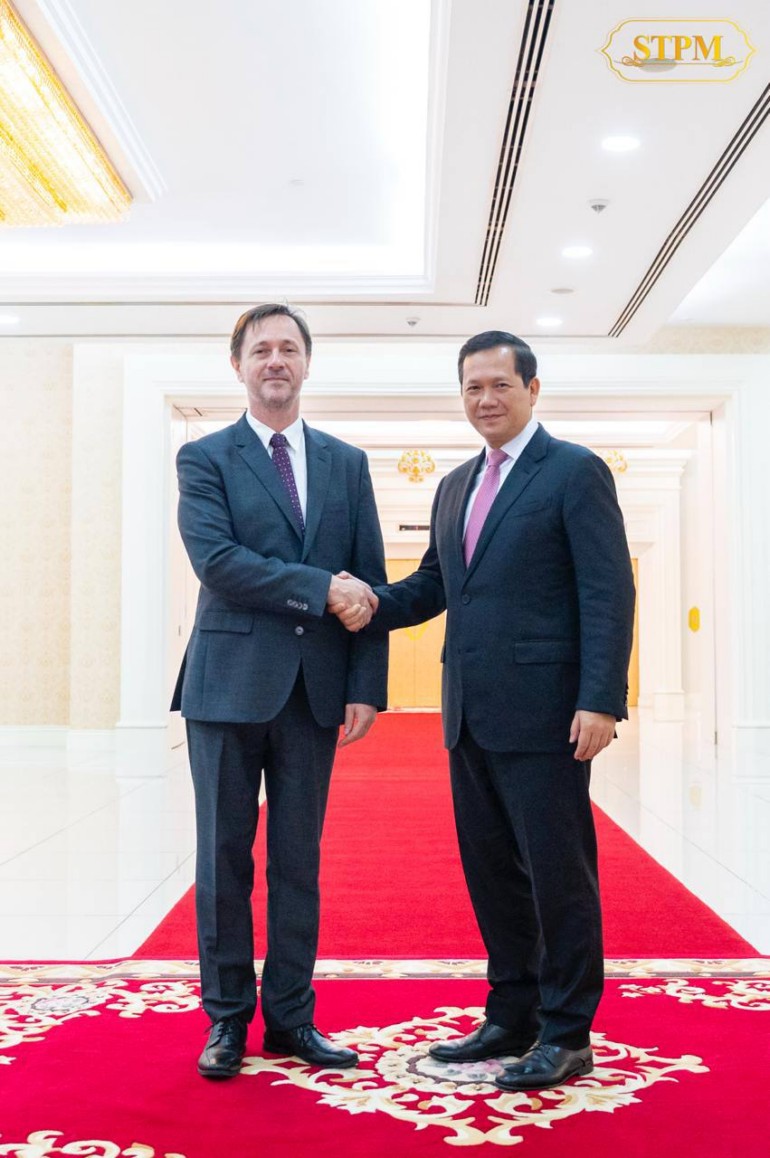 នាព្រឹកថ្ងៃទី២៣ ខែតុលា ឆ្នាំ២០២៤ សម្ដេចមហាបវរធិបតី ហ៊ុន ម៉ាណែត នាយករដ្ឋមន្ត្រីនៃព្រះរាជាណាចក្រកម្ពុជា បានអនុញ្ញាតឱ្យឯកឧត្តម Tibor BALOGHDI ឯកអគ្គរដ្ឋទូតនៃប្រទេសហុងគ្រី ប្រចាំព្រះរាជាណាចក្រកម្ពុជា ចូលជួបសម្ដែងការគួរសម និងពិភាក្សាការងារ នៅវិមានសន្ដិភាព។