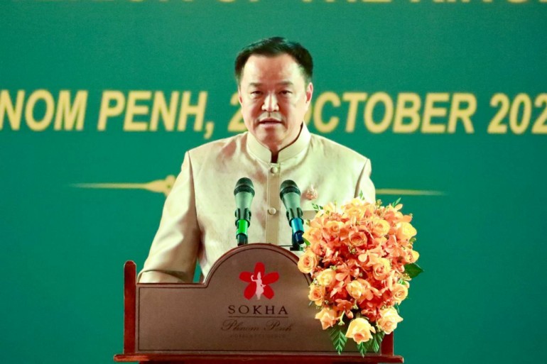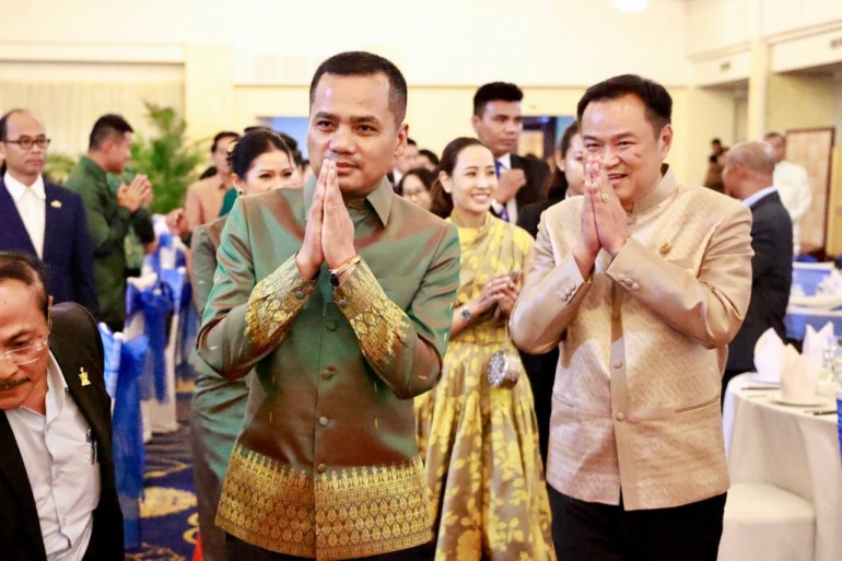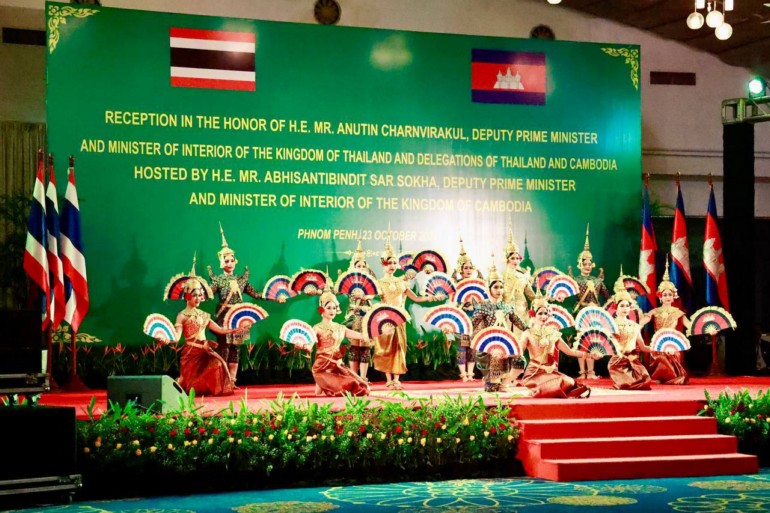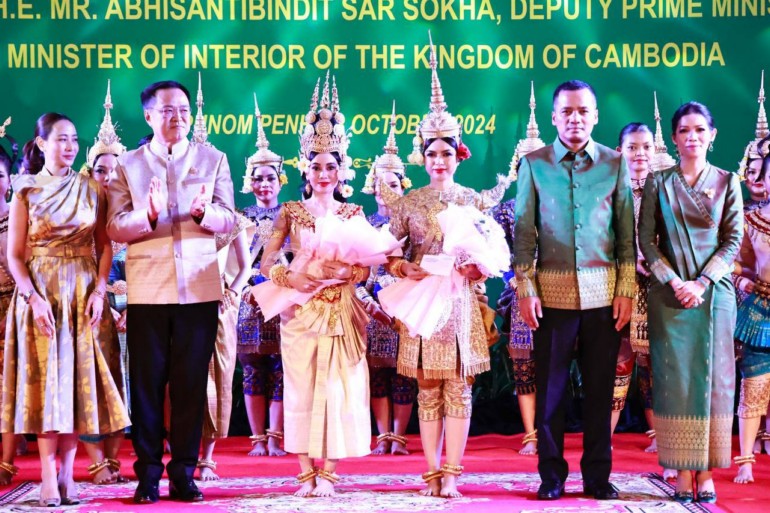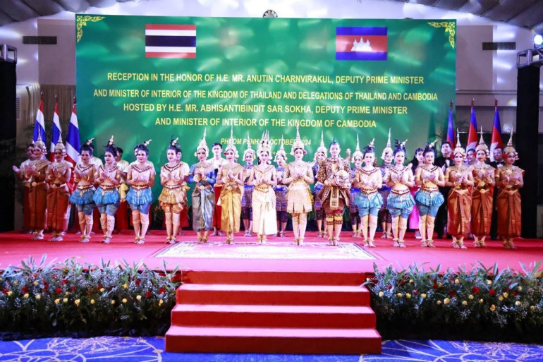 នៅល្ងាចថ្ងៃទី២៣ ខែតុលា ឆ្នាំ២០២៤ នេះ ឯកឧត្តមអភិសន្តិបណ្ឌិត ស សុខា ឧបនាយករដ្ឋមន្ត្រី រដ្ឋមន្ត្រីក្រសួងមហាផ្ទៃ និងជាប្រធានគណៈប្រតិភូ នៃព្រះរាជាណាចក្រកម្ពុជា និងលោកជំទាវ ព្រមទាំងក្រុមការងារ បានរៀបចំពិធីជប់លៀងជាកិត្តិយសជូនចំពោះឯកឧត្តម អនុធីន ឆានវីរ៉ៈគូន ឧបនាយករដ្ឋមន្ត្រី រដ្ឋមន្ត្រីក្រសួងមហាផ្ទៃ នៃព្រះរាជាណាចក្រថៃ និងលោកជំទាវ ព្រមទាំងគណៈប្រតិភូទាំងពីរ (កម្ពុជា-ថៃ) នៅសណ្ឋាគាររ៉េស៊ីដង់ សុខាភ្នំពេញ។