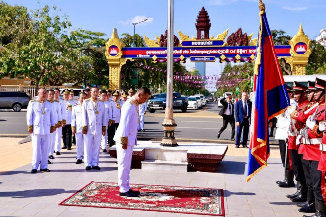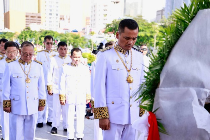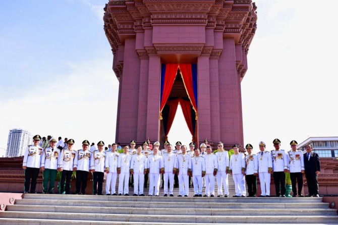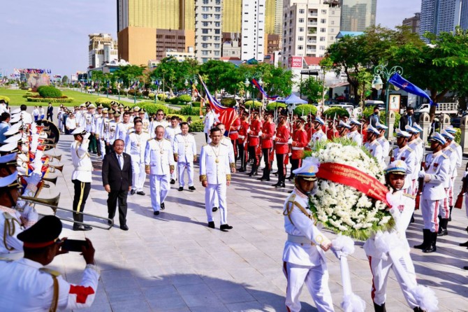 នៅរសៀលថ្ងៃទី៨ ខែវិច្ឆិកា ឆ្នាំ២០២៤ នេះ ឯកឧត្តមអភិសន្តិបណ្ឌិត ស សុខា ឧបនាយករដ្ឋមន្ត្រី រដ្ឋមន្ត្រីក្រសួងមហាផ្ទៃ បានអញ្ជើញដឹកនាំប្រតិភូក្រសួងមហាផ្ទៃ ថ្វាយកម្រងផ្កាគោរពវិញ្ញាណក្ខន្ធក្នុងទិវាបុណ្យឯករាជ្យជាតិ ៩វិច្ឆិកា ខួបលើកទី៧១ (៩ វិច្ឆិកា ១៩៥៣-៩ វិច្ឆិកា ២០២៤) នៅវិមានឯករាជ្យ។