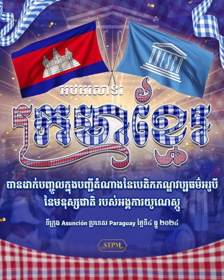 ក្រមាខ្មែរ ត្រូវបានដាក់បញ្ចូលក្នុងបញ្ជីតំណាង នៃបេតិកភណ្ឌវប្បធម៌ អរូបីនៃមនុស្សជាតិ របស់អង្គការយូណេស្កូ នៅទីក្រុង អាសង់ស្យុង (Asunción) សាធារណរដ្ឋប៉ារ៉ាហ្គាយ (Republic of Paraguay) នាថ្ងៃពុធ ៤កើត ខែមិគសិរ ឆ្នាំរោង ឆស័ក ព.ស.២៥៦៨ ត្រូវនឹងថ្ងៃទី៤ ខែធ្នូ ឆ្នាំ២០២៤ ដោយគណៈកម្មការអន្តររដ្ឋាភិបាល ដើម្បីការការពារបេតិកភណ្ឌវប្បធម៌ អរូបីរបស់អង្គការយូណេស្កូ ដែលបានអនុម័តជាឯកច្ឆន្ទតាមរយៈសេចក្ដីសម្រេច19.COM 7.b.27 ។