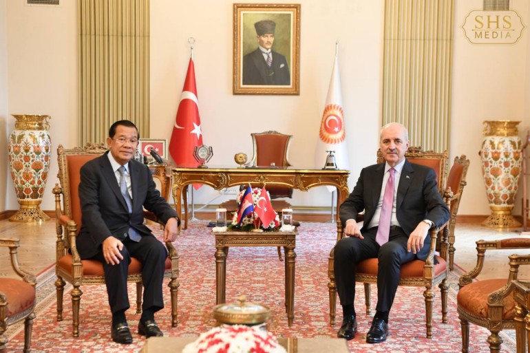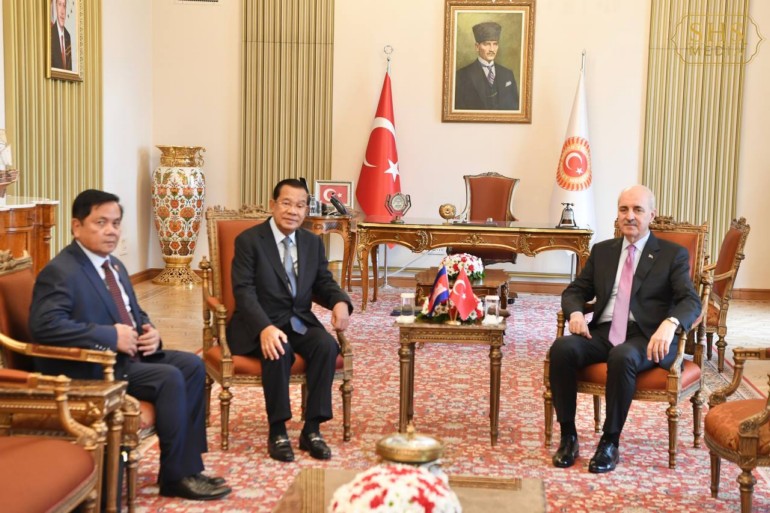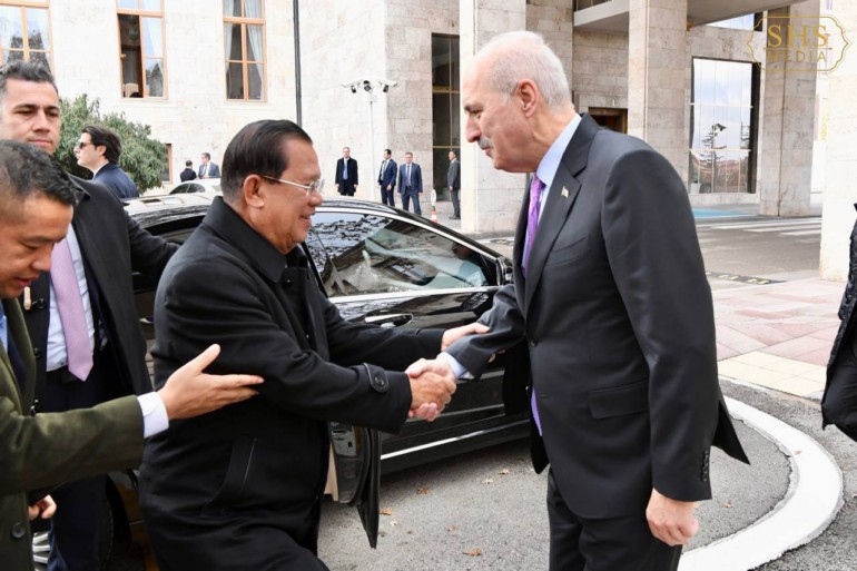 នៅព្រឹក ថ្ងៃទី១២ ខែធ្នូ ឆ្នាំ២០២៤ សម្តេចអគ្គមហាសេនាបតីតេជោ ហ៊ុន សែន ប្រធានព្រឹទ្ធសភានៃព្រះរាជាណាចក្រកម្ពុជា បានអញ្ជើញជួបពិភាក្សាជាមួយ ឯកឧត្តម Numan Kurtulmuş ប្រធានរដ្ឋសភា តួកគីយេ នៅវិមានរដ្ឋសភា រដ្ឋធានីអង់ការ៉ា។