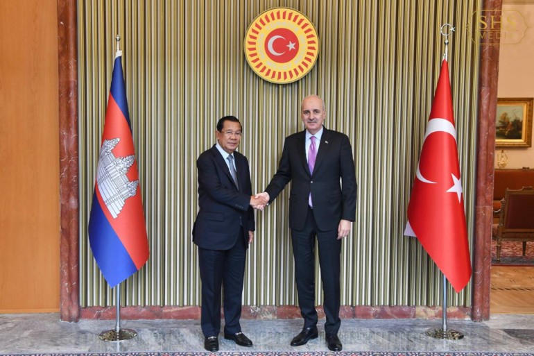 នាឱកាសនោះ សម្តេចតេជោ បានថ្លែងអំណរគុណ ឯកឧត្តម ប្រធានសភាតួកគីយេ ចំពោះការអញ្ជើញ និង ស្វាគម៍យ៉ាងកក់ក្តៅ ព្រមទាំង ការលើកឡើងយ៉ាងស៊ីជម្រៅអំពីទំនាក់ទំនង រវាងប្រទេសយើងទាំងពីរ។ សម្តេច បានលើកឡើងថា ទស្សនកិច្ចរបស់ សម្តេច នាពេលនេះ ចំពេលនៃខួប៦៥ឆ្នាំ នៃទំនាក់ទំនងការទូតនៃប្រទេសយើងទាំងពីរ និងបន្ទាប់ពី តួកគីយេ និងកម្ពុជា បានដាក់ស្ថានទូតទៅវិញទៅមក ។